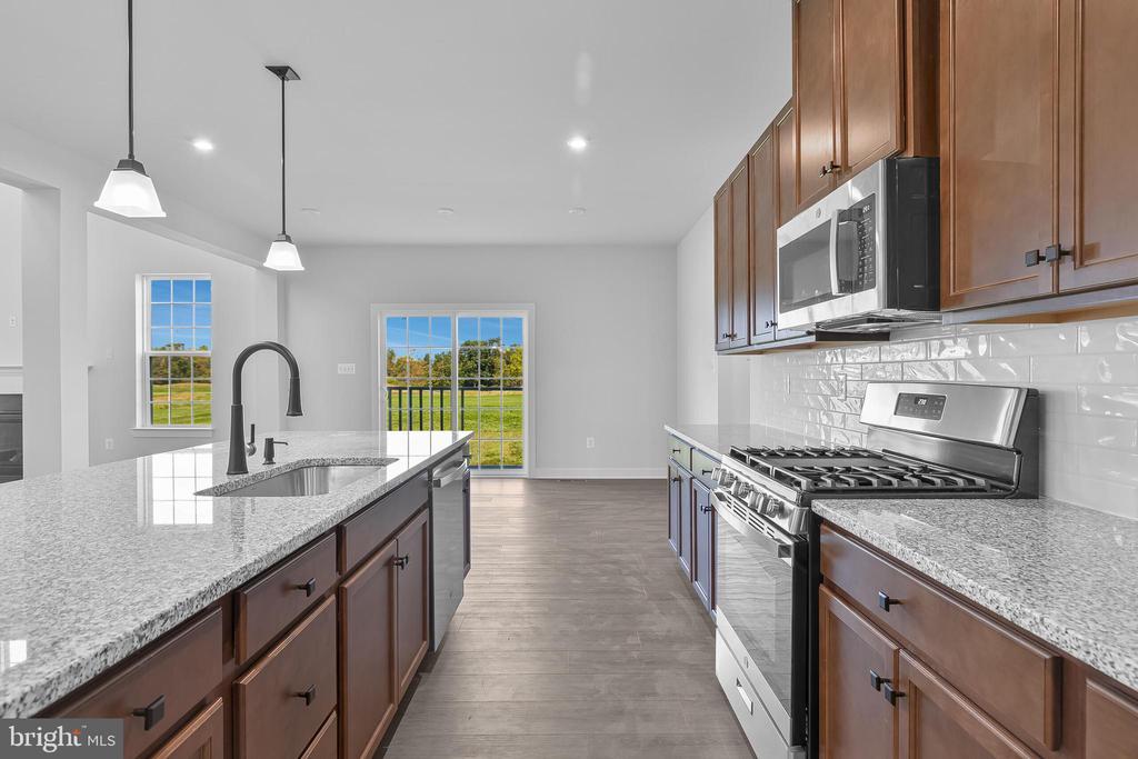 IMMEDIATE MOVE-IN This GORGEOUS VERSAILLES single-family home at The Greens of Greencastle is complete and ready to be your new home! The Versailles blends classic style with modern design. A light-filled foyer welcomes you toward both the formal dining room and living room. The two-story family room, featuring a natural gas fireplace, flows into the dinette and gourmet kitchen with an expansive island, granite countertops, beautiful backsplash, LVP flooring, and stainless-steel appliances. Stylish black finishes are featured throughout the interior and exterior of the home. Enjoy your morning coffee on the covered back porch while taking in the gorgeous green golf course views. Additional features include: -Smart home technology: WiFi-enabled thermostat & garage door openers -Main-level guest bedroom with full bath -Natural gas heat and tankless hot water heater for long, comfortable showers Upstairs, a spacious loft leads to three large secondary bedrooms, one with its own full bath, plus a fourth full bath off the hallway. The luxury owner’s suite includes: -Dual walk-in closets -Sitting area -Roman shower with double shower heads and seat -Dual vanities in a spa-like bath Also upstairs is a spacious laundry room with washer and dryer included. The finished basement offers a large rec room and an additional full bath — perfect for entertaining or relaxing. Located in a beautiful new section of the well-established Greens of Greencastle, this home offers stunning golf course views and conservation areas. Enjoy the charm of small-town living with the convenience of being: -Just 5 minutes from downtown Greencastle -Close to I-81 -15 minutes to Hagerstown, MD -30 minutes to Shippensburg -45 minutes to Frederick Closing cost assistance available with use of the seller’s preferred lender. Model/Sales Center: 1576 Shannon Drive South, Greencastle, PA 17225