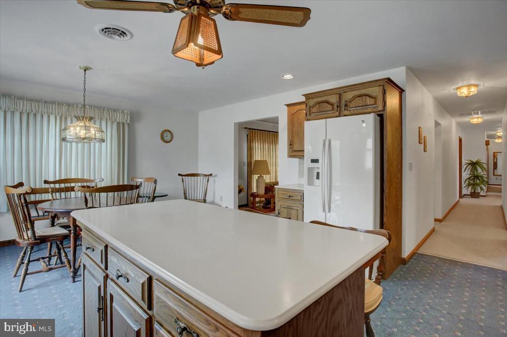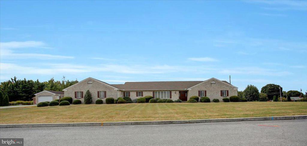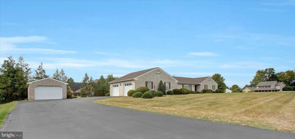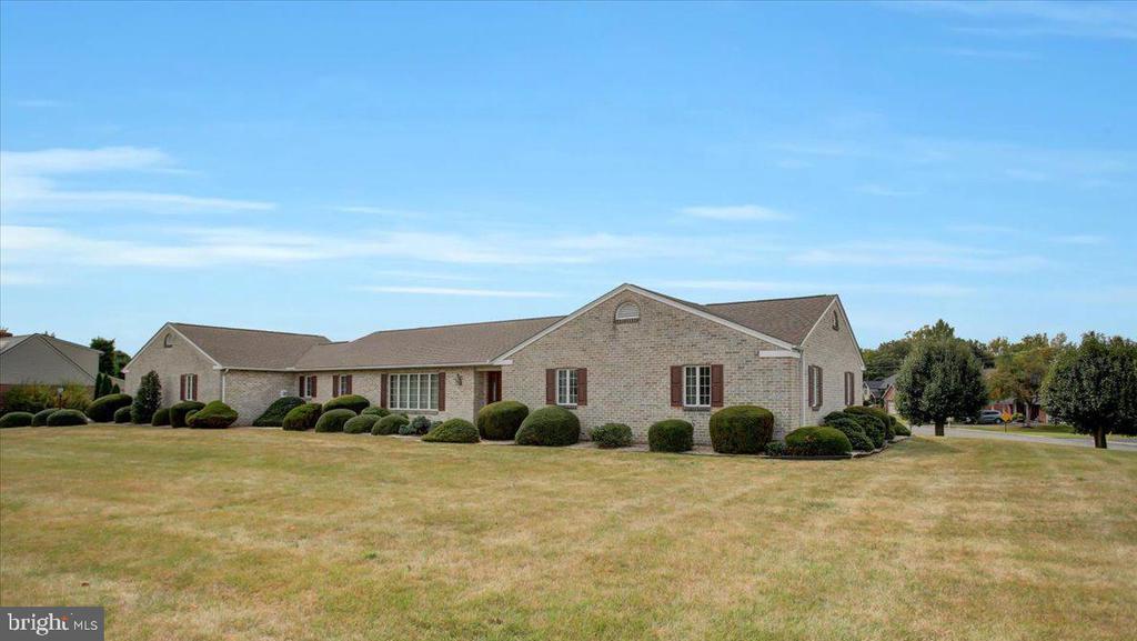 Distinctive all brick rancher in highly sought after borough community within walking distance to Greencastle School Complex. This sprawling one level rancher has been well maintained and in immaculate condition. Home offers formal living, dining room, family room, large eat-in kitchen is a cooks dream just in time for holiday entertaining....island, corian countertops, pantry, ceramic tile backsplash, double oven with a cooktop range. 3 bedrooms and 3 bathrooms. Primary bedroom has a huge walk-in closet. Main level laundry with washer/dryer conveying. Stained trim woodwork through the home. Replaced roof approx 3 years ago and all new A/C and ductwork. Storage galore. 2 car side load oversized garage plus and additional detached 1 car garage. Corner double lot containing .75 of acre....not your typical borough lot size! Brick exterior with paver sidewalks and patio. Property is in an estate and being sold "as is". Room sizes and sq ft are approx.