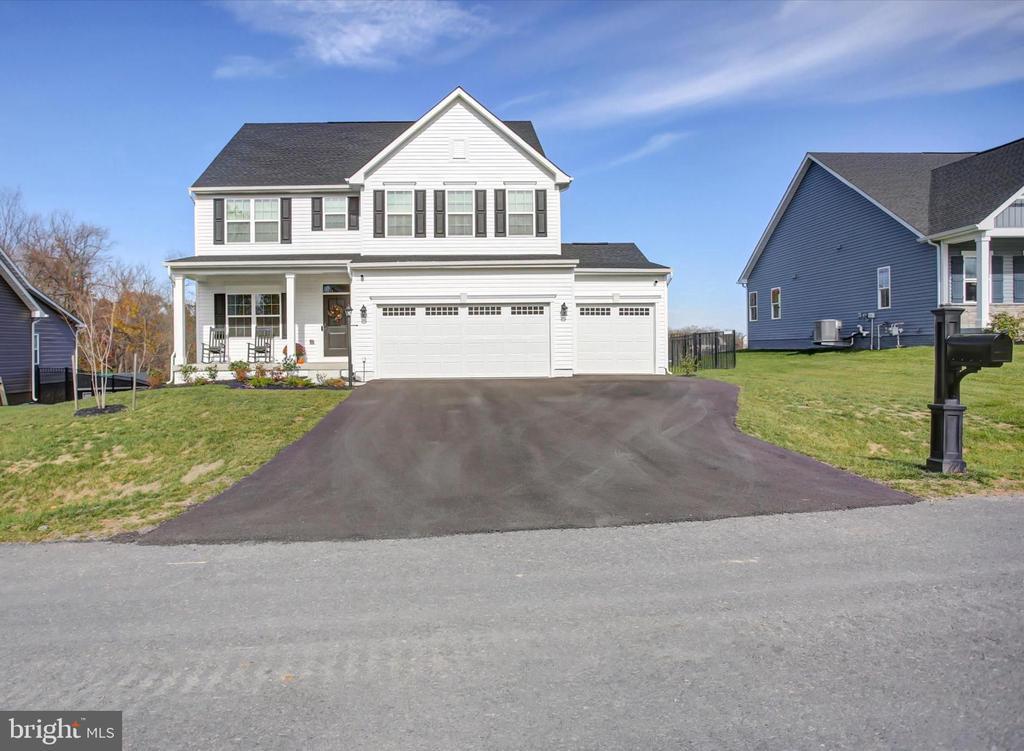 Second Chances! If you missed your opportunity the first time around in this exclusive golf course community, here’s your chance again! This stunning 4-bedroom, 3.5-bath new construction home is now available due to the seller’s relocation. Located in the highly desirable Greens of Greencastle community, this spacious home showcases an open-concept layout filled with natural light, luxury vinyl plank flooring throughout the main level, hardwood stairs, gas fireplace, and recessed lighting. The well-designed floor plan begins with a three-car garage entry featuring a built-in bench and drop zone for organization. The remarkable kitchen offers quartz countertops, a large island with pendant lighting, and gas cooking, seamlessly connected to the dining area—perfect for entertaining. A main-level flex space provides versatility for a home office, playroom, or sitting room. Additionally, there is a designated office space directly off of the kitchen area with a breathtaking view. Upstairs, you’ll find four spacious bedrooms, including a primary suite with dual walk-in closets, a soaking tub, and an oversized walk-in shower. The laundry room with sink on the upper level adds convenience. Step outside to a fully fenced, nearly half-acre lot—ideal for relaxing or hosting gatherings. This home includes a builder warranty, plus thoughtful upgrades such as window treatments and a water treatment system—all move-in ready.