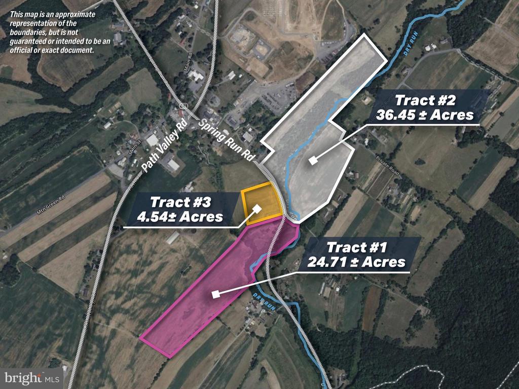 NICE RANCH STYLE HOME SITUATED ON 4.54 ACRES! The home features 2 bedrooms, 1 bathroom, kitchen, and living room. The land lays nice and flat and is nearly all tillable with Hagerstown and Monongahela silt loams. Great location less than a half mile from Rt 75 and not far from the PA turnpike. Approx. 450 feet of frontage on Spring Run Rd. Outstanding views of the surrounding farm land! Come and make this home your own! This property will be offered at auction on Thursday December 18, 2025 @ 3:00pm. The List price in no way represents a minimum, starting, or acceptable bid. This property will be offered in a multi-parcel auction, giving buyers the flexibility to purchase Tract 1, Tract 2, Tract 3, any combination of tracts, or the entire property as a whole. Tract 1: 24.71 acres with a farm house, outbuildings, spring run frontage, and a pond. Tract 2: 36.45 acres with 20 acres tillable and spring run frontage. Tract 3: 4.54 acres with a ranch style home, nearly all tillable. Taxes for the entire property are $3,150; taxes may be reassessed dependent on how the property is sold.