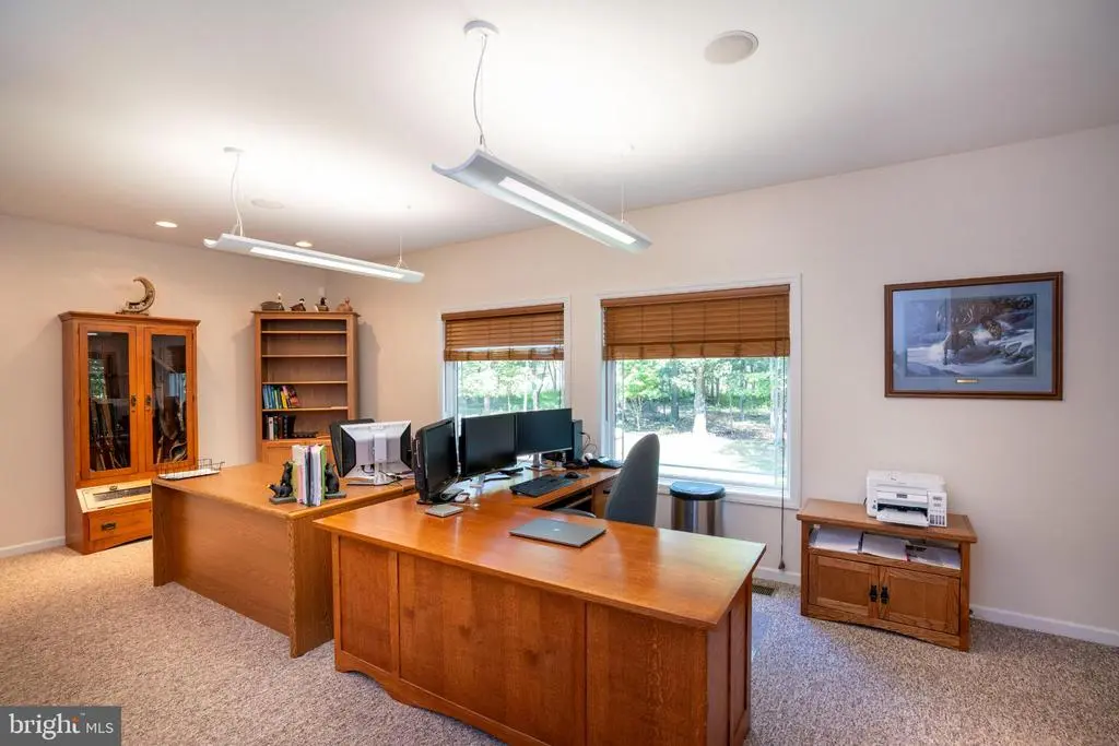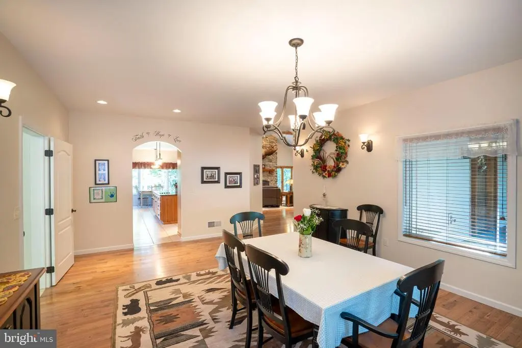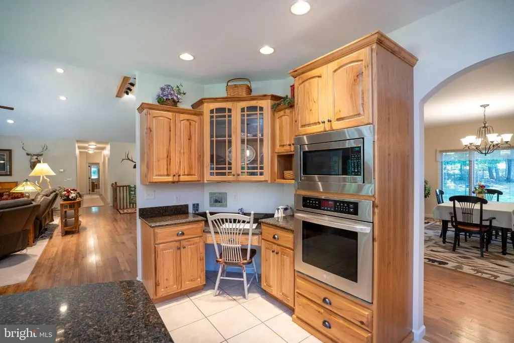 Nestled on a double lot in the tranquil community of Lakeland Pines near Raystown Lake, this stunning ranch-style home combines modern luxury with serene country living, set on 2.25 acres of rolling land with sweeping mountain and pastoral views. Inside, an open and thoughtfully designed floor plan welcomes you with both elegance and functionality. At the heart of the home, the gourmet kitchen features a spacious island, built-in microwave, and wall oven—perfect for both everyday cooking and entertaining. A formal dining room provides a warm space for gatherings, while the inviting living room, highlighted by a striking stone fireplace, creates the ideal retreat. The residence offers five spacious bedrooms, including a private primary suite with a walk-in closet and spa-inspired bath featuring a soaking tub and stall shower. Rich hardwood floors, recessed lighting, and tasteful finishes elevate the home’s timeless charm. A partially finished daylight basement with a convenient side entrance presents endless options—home theater, gym, or additional living space. Outdoors, this property truly shines. Extensive landscaping, exterior lighting, a deck, and a large patio set the stage for both relaxation and entertaining. Backing to trees, the setting offers privacy and peaceful views of nature. Residents also enjoy private access to the Lakeland Pines Community Pond for leisurely strolls or quiet reflection by the water. Practicality meets convenience with an oversized attached heated garage offering ample storage and a rare pull-through bay, perfect for a boat or jet ski. For outdoor enthusiasts, the Allegrippis Trail System is just 1.5 miles away, and two Raystown Lake boat launches are only 3.5 miles from the property. More than a home, this property offers a lifestyle—where luxury and comfort meet natural beauty and outdoor adventure.