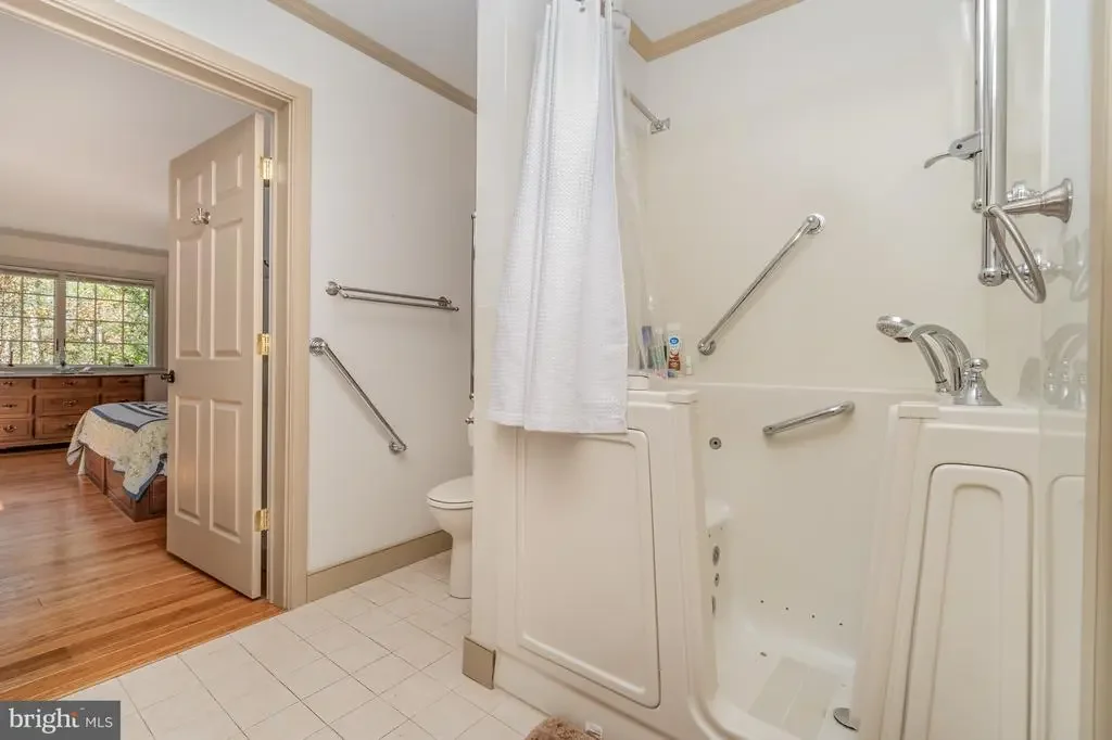 Bathroom - Soaking Tub, Bathroom - Jetted Tub, Bathroom - Tub Shower, Curved Staircase, Crown Moldings, Entry Level Bedroom, Exposed Beams, Wood Floors
