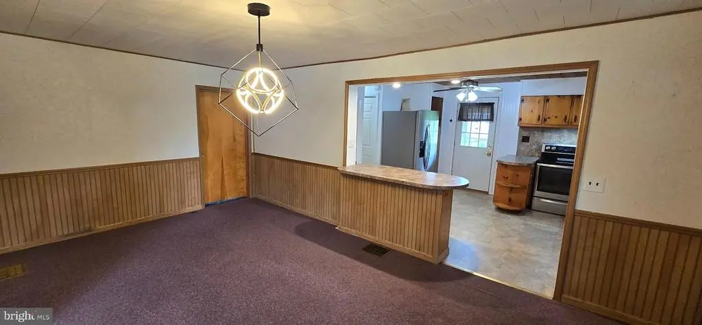 Unique opportunity to live just outside of Turn 3 of the Port Royal Speedway!! Ranch home offers 3 bedrooms, 1 full bath with tub/shower combo and a first floor laundry. Spacious, well-lit living room with gorgeous hardwood floors, bay window and wall-to-wall stone fireplace. The kitchen features stainless steel appliances. All appliances, including washer & dryer are included. Additional finished square footage in attic could be a playroom/office/more bedrooms/storage. Exposed walkout basement with a half bath, stall shower and kitchen area. Downstairs also features a storage room, utility room and versatile rec/game room perfect for entertaining with a slate pool table & accessories included. Step outside to relax on the wraparound covered front porch or listen to the sounds of the pond on the large rear covered porch overlooking the property. Back yard includes a newer 54 in deep above ground chlorine vinyl-lined pool with a 10x20 pool deck. Pool and all pool supplies/inflatables included. Take advantage of ample parking with a detached 2-car garage with paved driveway beside the home and detached 1-car garage with attached 1-car carport and stone parking area in the rear. Video surveillance. Public water/sewer. Located in Port Royal Borough, this home combines convenience, functional space, and an exciting location. Zoned "Downtown Commercial" with a flexible layout, this property is ideal for Airbnb, Vrbo, multi-unit rental potential or simply enjoy it all as your new home. Bonus perk: Two annual transferable PR "Speed Palace" season passes included! Schedule a showing today!