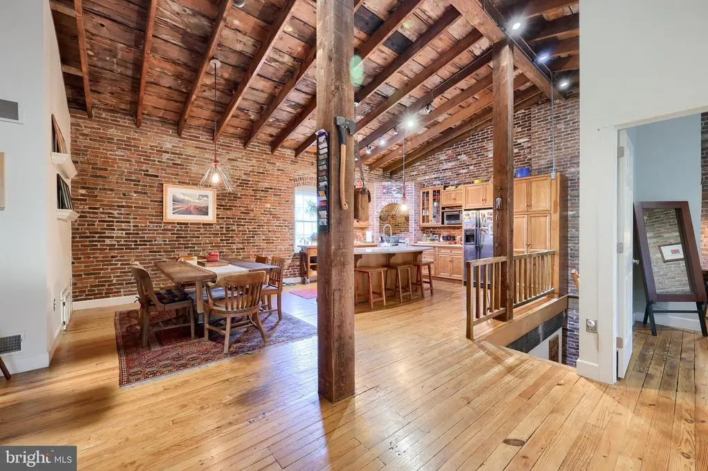 Along the Susquehanna River in Marietta’s historic district, this beautifully converted 1860s brick warehouse offers a truly unique living experience, a perfect blend of preserved character and imaginative design. Originally part of a 19th-century lumber company, the building has been thoughtfully transformed into a home that honors its industrial roots, featuring exposed brick, original wood beams and floors, and a fully functional original Otis freight elevator that conveniently connects all three levels. A major recent upgrade includes a brand-new roof installed in September 2025 with durable 30-year shingles, providing peace of mind and long-term protection. The third floor offers a spacious, open-concept layout ideal for both entertaining and everyday living. Vaulted ceilings and original hardwood floors lead to the kitchen with a Corian island, built-in wine cooler, custom lighting crafted from reclaimed chimney sweeps, and a seamless flow into the generous dining and living areas. A capped gas line offers the option to switch from electric to gas cooking, if preferred. The primary suite includes a walk-in closet with built-ins, an additional closet, and access to the full bath with a relaxing jetted tub, stall shower, and a sliding privacy door. This level also includes a second bedroom with a walk-in closet and a convenient laundry closet. Down one level, the second floor offers two additional bedrooms, a full bath with charming vintage details, and a cozy study with built-in shelving. Sliding doors open to a spacious second-story deck overlooking the fenced backyard, perfect for outdoor living, entertaining, or simply enjoying the view. In the winter months, the bare trees reveal views of the Susquehanna River. On the main floor, you'll find a heated workshop and several unfinished areas that provide incredible potential for future projects, hobbies, or personalized space. This location also offers easy access to outdoor recreation, with a bike path, scenic trails, and a small park just across the street. Surrounded by canal remnants, historic iron furnaces, and classic architecture, this home offers a rare opportunity to own a piece of Marietta’s past, thoughtfully reimagined for modern living. All of this is just a short distance from local cafes, pubs, River Trail Brewing, the Marietta Boat Club, Chickies Rock County Park, museums, and quick access to US-30 West. Don’t miss the chance to make this extraordinary home yours, call today to schedule your private tour!