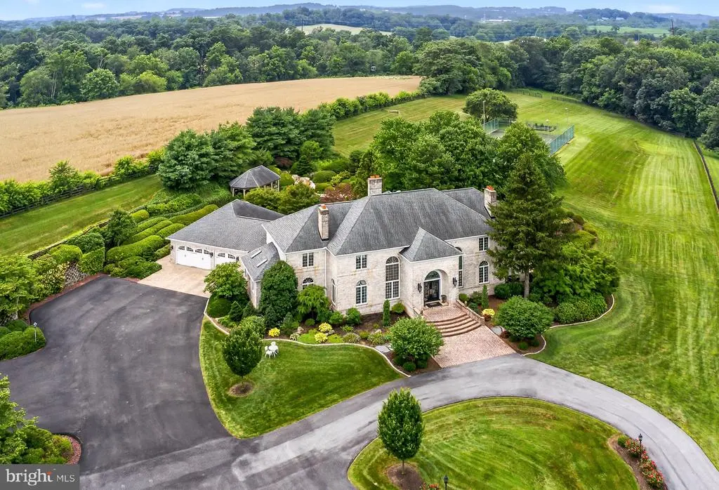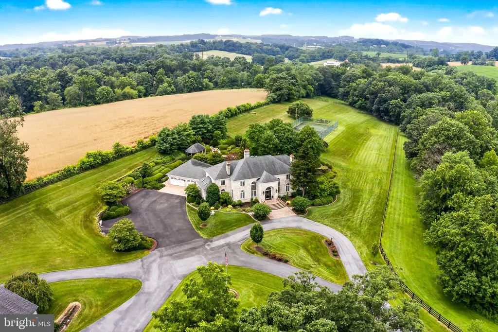 Set back along a picturesque quarter-mile tree-lined driveway, Serenity Acres unfolds across 24 rolling acres in the heart of Lancaster County, Pennsylvania, offering a lifestyle of complete privacy, effortless luxury, and endless versatility. As you approach, the grandeur of the estate slowly reveals itself—a breathtaking blend of elegance and country charm that immediately captivates. This impeccably maintained residence delivers a true resort-like experience where every detail has been thoughtfully designed to inspire comfort, function, and enjoyment. A grand, light-filled foyer welcomes you inside with custom marble mosaic flooring and twin spiral staircases, setting the tone for the sophistication found throughout. The expansive great room features soaring ceilings and a striking fireplace, while the formal dining room offers an elegant setting for entertaining, highlighted by a decorative ceiling mural and sparkling chandelier. The gourmet kitchen is a standout, equipped with premium appliances, sleek finishes, and generous prep space—perfect for home chefs or catered events alike. The first-floor primary suite is an exceptional retreat, offering a cozy fireplace sitting area, direct access to a private hot tub, and a luxury spa bath featuring a steam shower, soaking tub, heated tile floors, and heated towel holders for the ultimate in comfort. Each upstairs bedroom is a private suite with its own updated en-suite bath, providing both convenience and privacy for family and guests. The finished lower level of the home adds even more flexibility and enjoyment, featuring a second full kitchen, home theater, billiards room, fitness area, half bath, and another warm fireplace-centered living space. Step outside and you’re immediately immersed in your own private resort. The 25x100 heated saltwater pool, holding over 41,000 gallons, features a cascading waterfall and is surrounded by lush gardens (with irrigation system to keep everything looking healthy!), a stamped concrete patio, and a charming pavilion—perfect for everything from large summer gatherings to quiet morning coffees. The outdoor recreation continues with a lighted tennis court, putting green, and garden shed. For those seeking a working or hobby farm lifestyle, Serenity Acres offers over 12 acres of fenced and electrified pasture, a five-stall horse barn, and a separate steer barn with ample space. The beautifully restored 100x40 bank barn doubles as an extraordinary event venue, featuring a full caterer’s kitchen, vintage 1890s three-arched bar, state-of-the-art media and lighting systems, 2 bathrooms (one of which is handicap accessible) and seating for up to 72 guests—ideal for weddings, retreats, or private celebrations. A separate log cabin on the property serves as a charming guest or caretaker space, offering a main-level bedroom plus an open loft that easily functions as a second sleeping area. Despite its peaceful seclusion, Serenity Acres is conveniently located just 10 minutes from the PA Turnpike and Lititz, and 15 minutes to the Lancaster Airport. With unmatched flexibility for luxury living, entertaining, farming, hosting, and recreation, Serenity Acres is not just a home—it is a destination, a retreat, and a rare legacy estate where lifestyle and landscape are perfectly aligned.