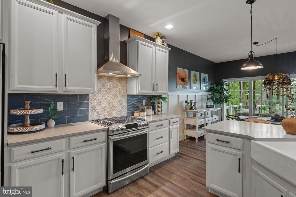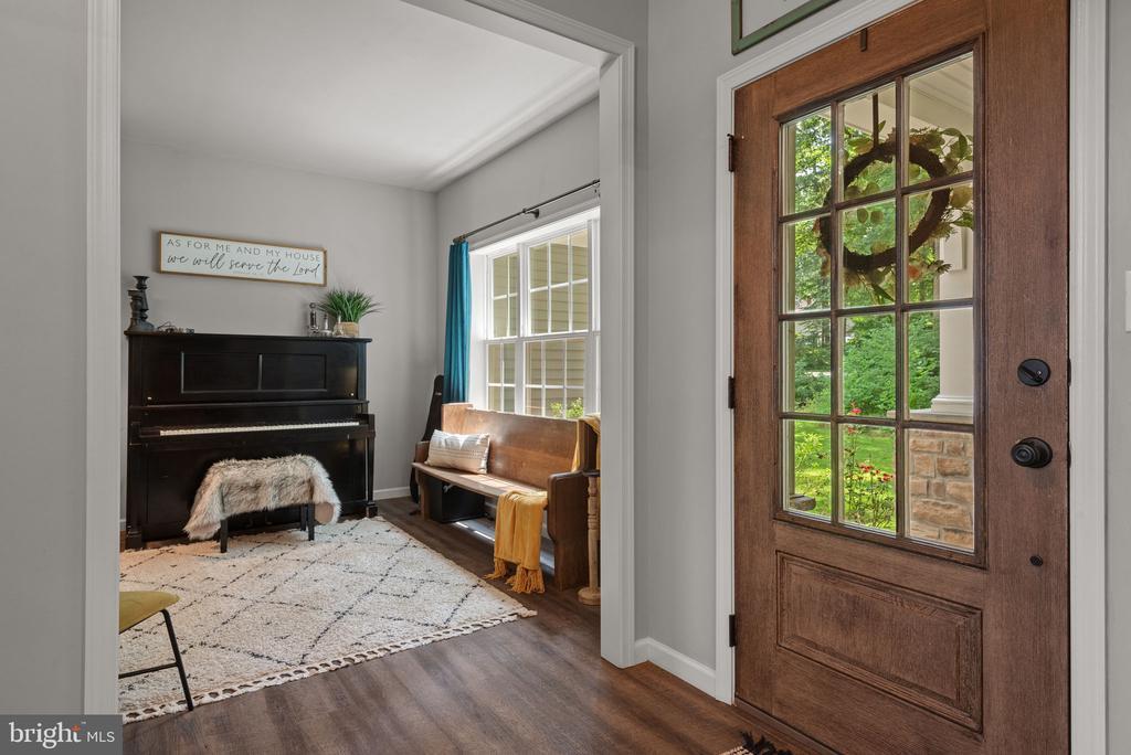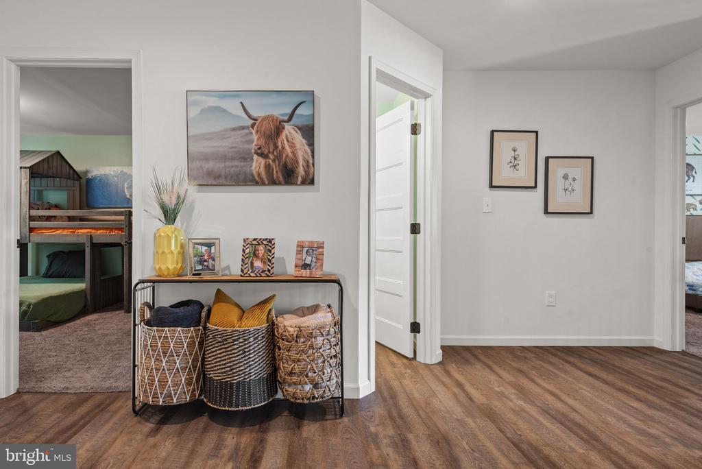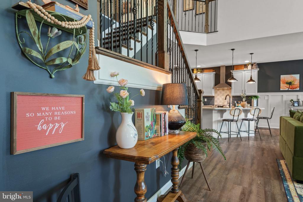 Welcome to the Nottingham Manor — a beautifully designed 4-bedroom, 2.5-bath home situated on 1.69 scenic acres in the heart of Lancaster. With wooded trails, open yard space, and high-end finishes throughout, this home offers the perfect combination of luxury, function, and tranquility. Step inside to find tons of natural light and luxury plank flooring throughout both levels, with plush carpet in all bedrooms for added comfort. The main level features a home office, a cozy living area with a gas fireplace, and a dramatic two-story living room ideal for entertaining. The heart of the home is the stylish kitchen, complete with quartz countertops, stainless steel appliances, a sleek range hood, butler’s pantry, and recessed lighting — blending elegance and functionality. The first-floor primary suite is a private retreat with dual walk-in closets, two separate vanities, a soaking tub, and a tiled walk-in shower with dual shower heads for a spa-like experience. Upstairs, you’ll find three generously sized bedrooms — each with its own walk-in closet — and a full bath. Step outside to enjoy the peaceful setting from your composite deck or entertain on the oversized stamped concrete patio, all backed by your own wooded trails. Centrally located in Lancaster and thoughtfully designed with comfort and style in mind, this home truly has it all.