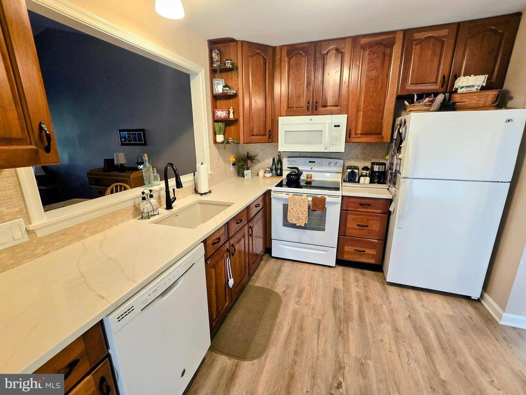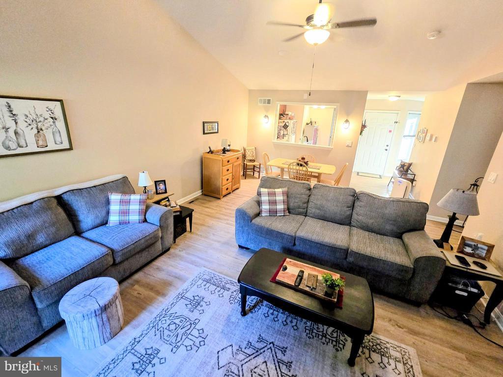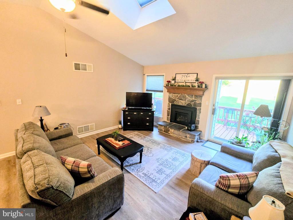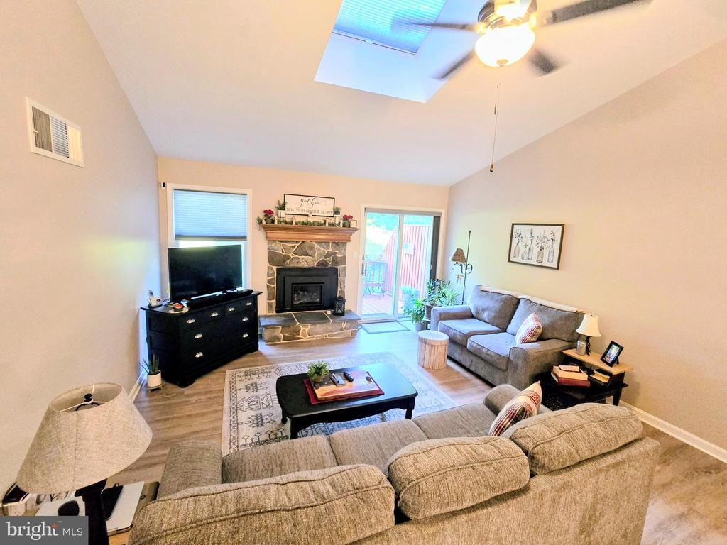 Nestled in the charming Stoneridge community, this beautifully renovated townhouse offers a perfect blend of comfort and modern living. Built in 1989 and thoughtfully updated in 2022, this home boasts an inviting atmosphere with a spacious open floor plan that seamlessly connects the living, dining, and kitchen areas. Step inside to discover a warm and welcoming interior featuring luxury vinyl plank flooring that flows from room to room and cathedral ceilings enhancing the home's aesthetic appeal. The living room is anchored by a stunning stone fireplace with beautiful mantle, perfect for cozy evenings spent with loved ones and holiday decorating! Natural light floods the space through numerous windows and a large skylight, creating a bright and airy ambiance throughout. The kitchen is equipped with new appliances, including a built-in microwave, dishwasher, and electric oven/range, and refrigerator, new quartz countertops, and a custom tile backsplash, making meal preparation a delight! The adjacent dining area is ideal for entertaining or enjoying casual meals, while the single level bedrooms provides convenience and accessibility. Two full bathrooms, both freshly remodeled, ensure comfort for all. The unfinished basement offers endless possibilities for customization, whether you envision a family room, home gym, workshop, or additional storage space. Step outside onto the deck from either the primary bedroom or the living room, where you can enjoy morning coffee or evening gatherings listening to the birds and taking advantage of the open common areas. The opportunity to live maintenance free enhances the appeal of this property with its well-maintained common areas, lawn maintenance, and snow removal services. The neighborhood is known for its friendly atmosphere and is conveniently located near local parks, providing ample opportunities for outdoor activities and relaxation. Additionally, you will be located less than a mile from the square and all that downtown Elizabethtown has to offer, making daily life convenient and stress-free. With an attached garage and driveway parking, this home offers both functionality and ease of access. Experience the perfect blend of comfort, community, and modern living in this immaculate home-your new sanctuary awaits!