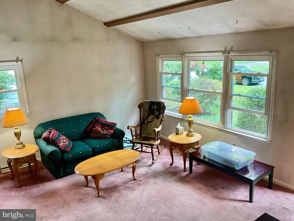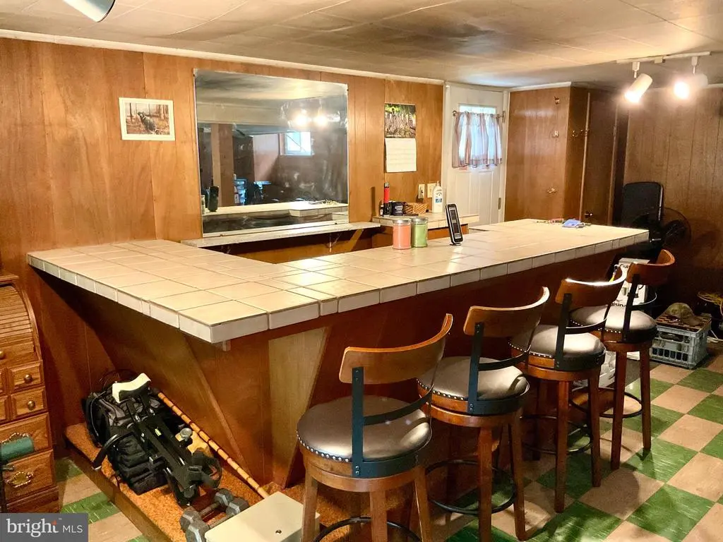 Bar, Carpet, Ceiling Fan(s), Exposed Beams, Wood Floors
