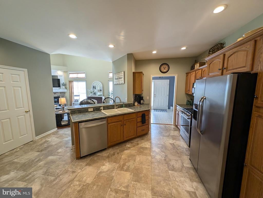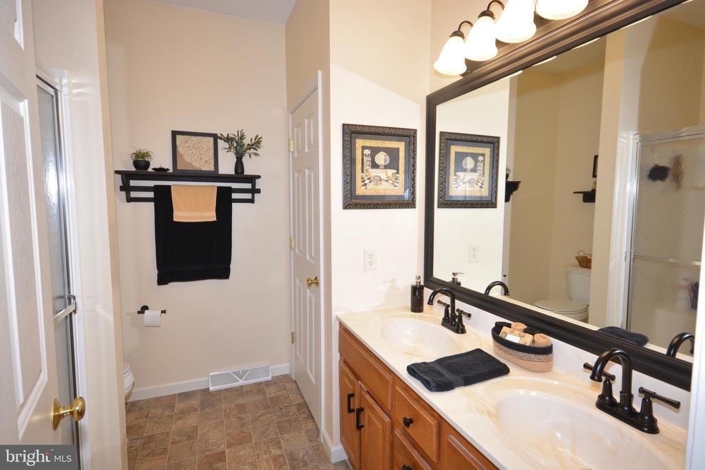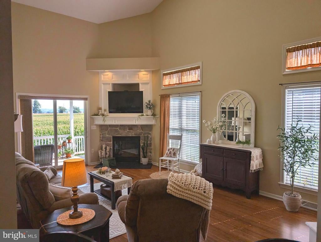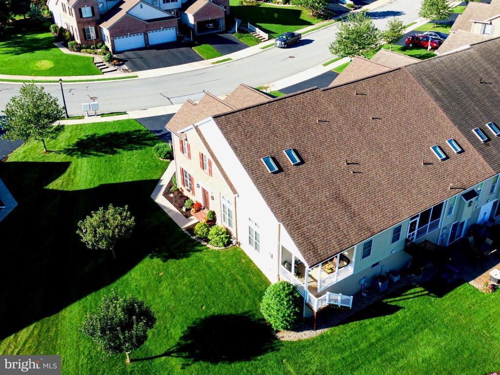 This pristine end-unit townhouse offers an inviting living space with a picturesque view. The home boasts two bedroom suites, each equipped with walk-in closets and private baths—one located on the main level and the other on the upper level. The living room, featuring a vaulted ceiling, a cozy gas fireplace with a stone surround, and two skylights, opens up to a covered porch with serene farmland views. A spacious loft overlooks the living room from the second floor, adding a sense of openness. The living and dining rooms are adorned with elegant bamboo hardwood flooring. The foyer includes a coat closet, a powder room, and easy access to the kitchen's pantry. Recent home improvements include a new roof (November 2019), fresh paint, new central air system, new appliances, and upgraded LED lighting with dimmer switches. The large unfinished basement is enhanced with a painted and sealed foundation, a workbench, a custom tool cabinet, an air purifier system, a water softener, and a reverse osmosis system. Completing this remarkable home is an attached two-car garage, providing ample space and convenience. A one year home warranty is provided for buyer’s peace of mind.