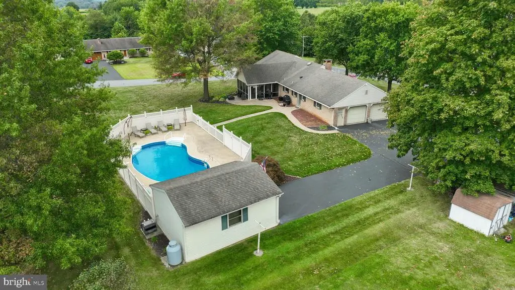 Nestled on a picturesque corner lot, this meticulously maintained ranch home offers the perfect blend of rural serenity and modern convenience. Just minutes from downtown Lititz and Manheim, you’ll enjoy the quiet charm of country living with quick access to shopping, dining, and entertainment. Step inside to discover an inviting open floor plan designed for comfort and functionality. The remodeled kitchen is a showstopper, featuring sleek stainless steel appliances, granite countertops, a ceramic tile backsplash, and plenty of cabinetry. The kitchen flows seamlessly into the dining area and great room, highlighted by a double-sided wood-burning fireplace that creates a warm and welcoming atmosphere. An additional room provides the flexibility to serve as a home office, living room, or cozy sitting area. This home offers three spacious bedrooms and 1 ½ baths, including a fully remodeled main bath with a ceramic tile shower and modern finishes. A convenient first-floor laundry room adds to the ease of everyday living. The full unfinished basement presents endless opportunities—whether you dream of a game room, workshop, or additional storage. Outdoors, the property truly shines. Entertain or relax in your private oasis with a screened-in porch, stamped concrete patio and walkway, and a sparkling in-ground saltwater pool. With a two-car attached garage, one-car detached garage, and dedicated pool storage, there’s space for all your vehicles, hobbies, and seasonal items. This move-in ready home is a rare find—peaceful country charm with modern upgrades and resort-style outdoor living. Don’t miss your chance to make it yours!