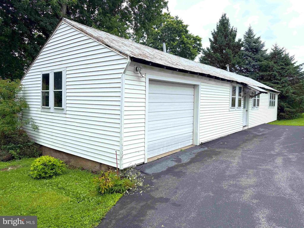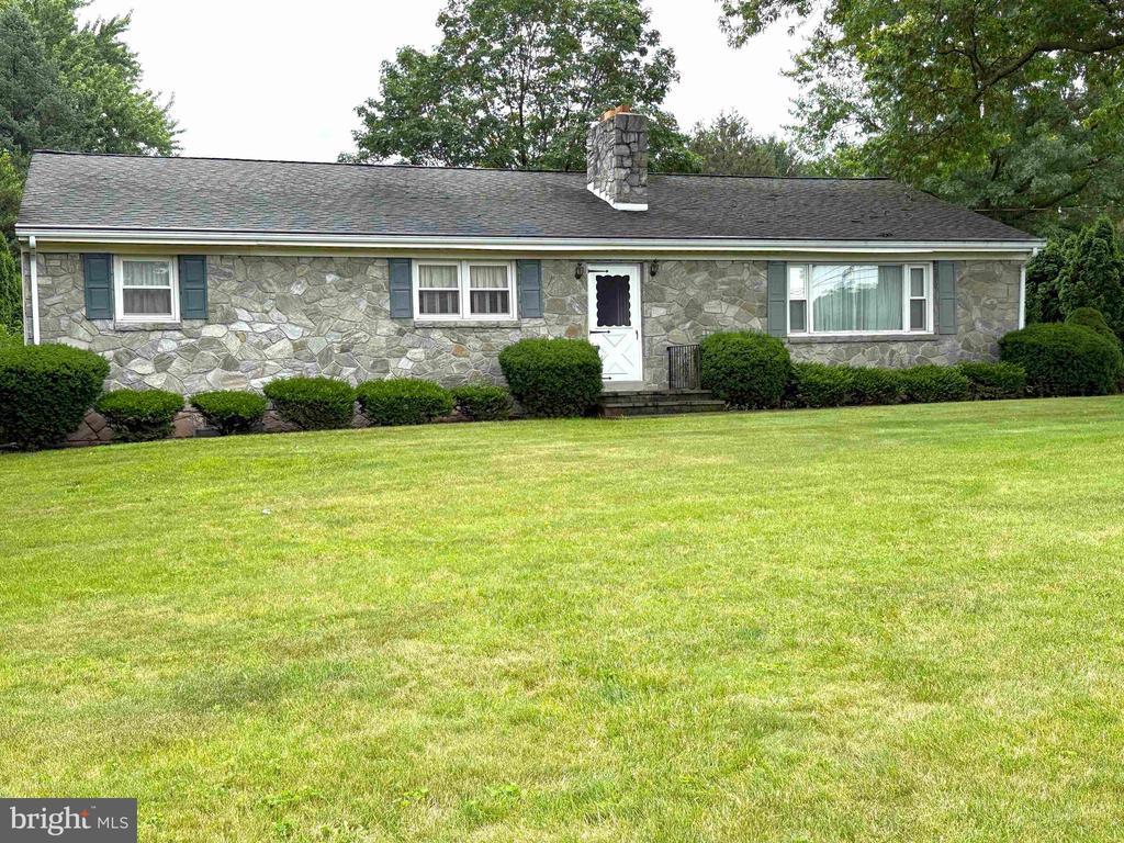 THIS PROPERTY IS GOING TO AUCTION ON THURSDAY OCTOBER 23, 2025 @ 2:00 PM. THE LIST PRICE ONLY REFLECTS THE SUGGESTED STARTING BID. Clean, real stone and vinyl siding ranch home with detached 60' x 20' detached garage/workshop on a beautiful 1.96 acre lot. Eat-in kitchen with solid Cherry cabinetry with abundant counter space. Living room with front Bay window, fireplace and built-in bookshelves. Office with side entrance. 3 bedrooms, 1.5 bathrooms, oak hardwood flooring, charming rear covered porch. Full basement has a rec room with solid wood bar, utility room and laundry hook-up. Zoned R-1 with farmland views out back.