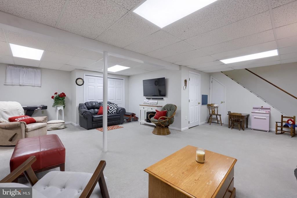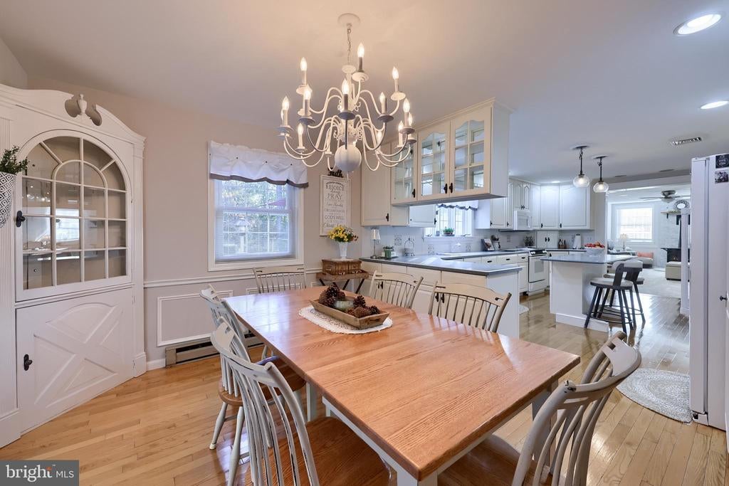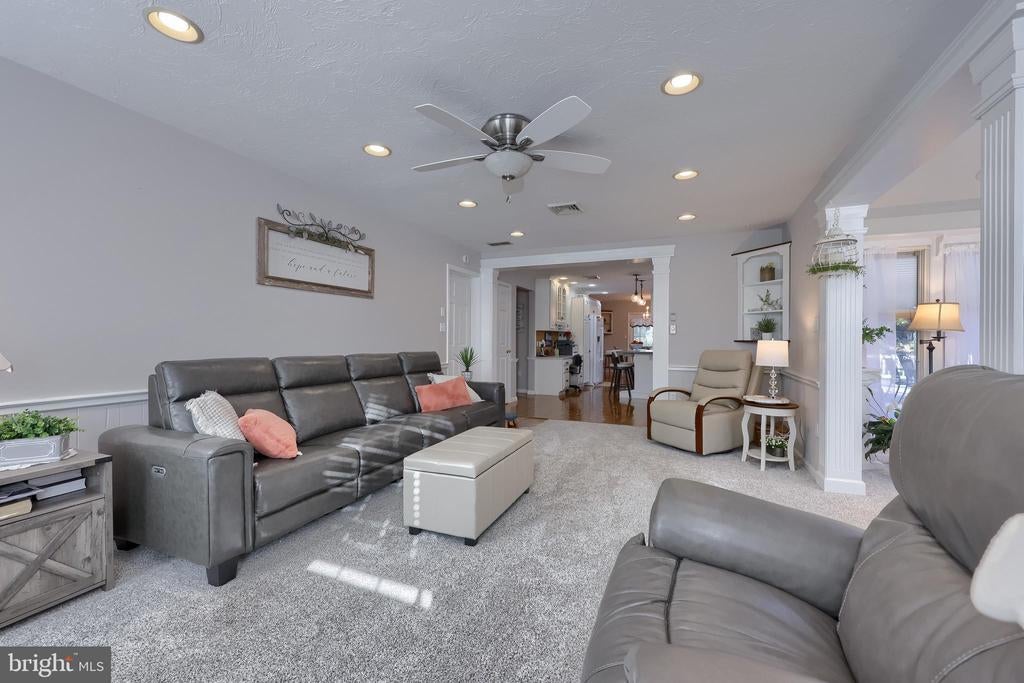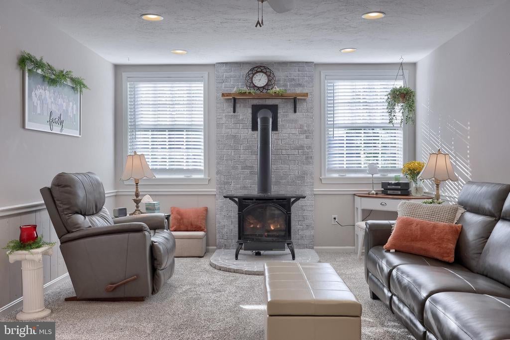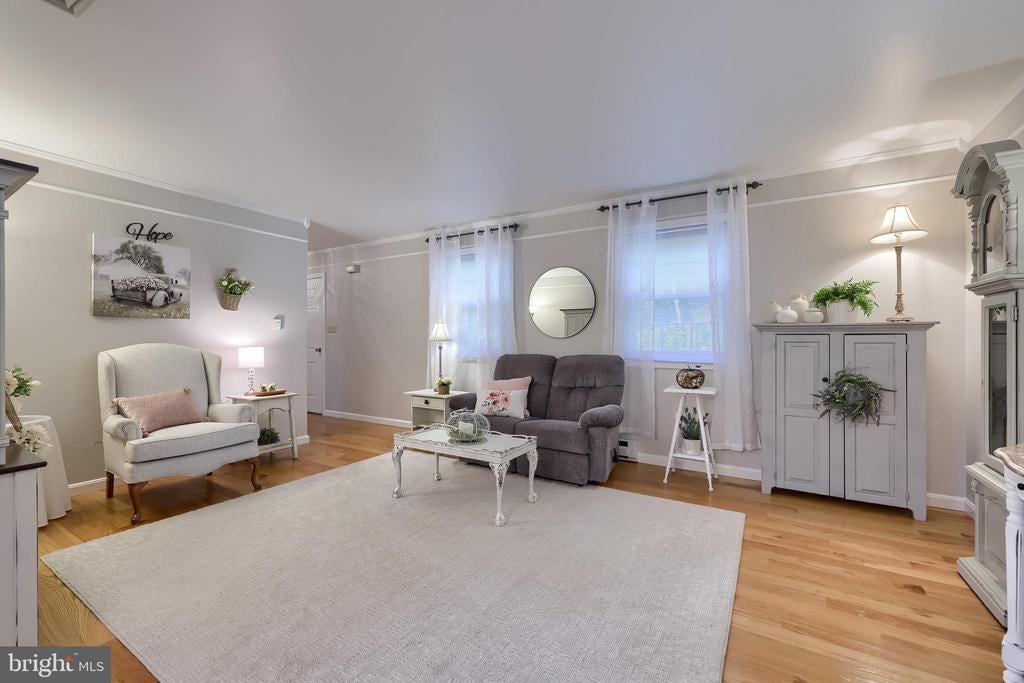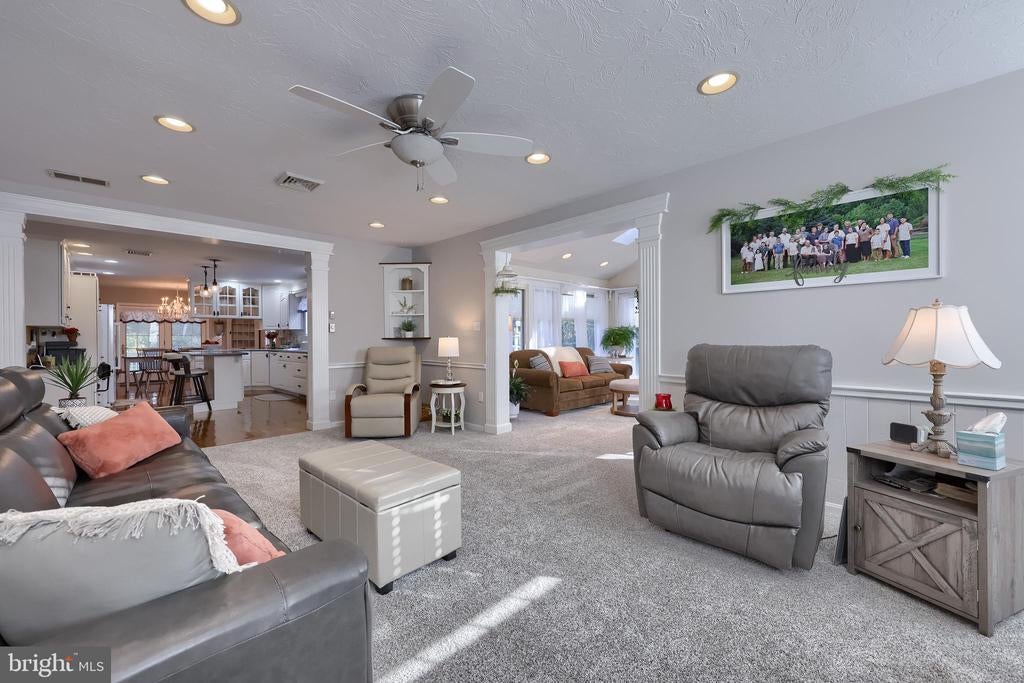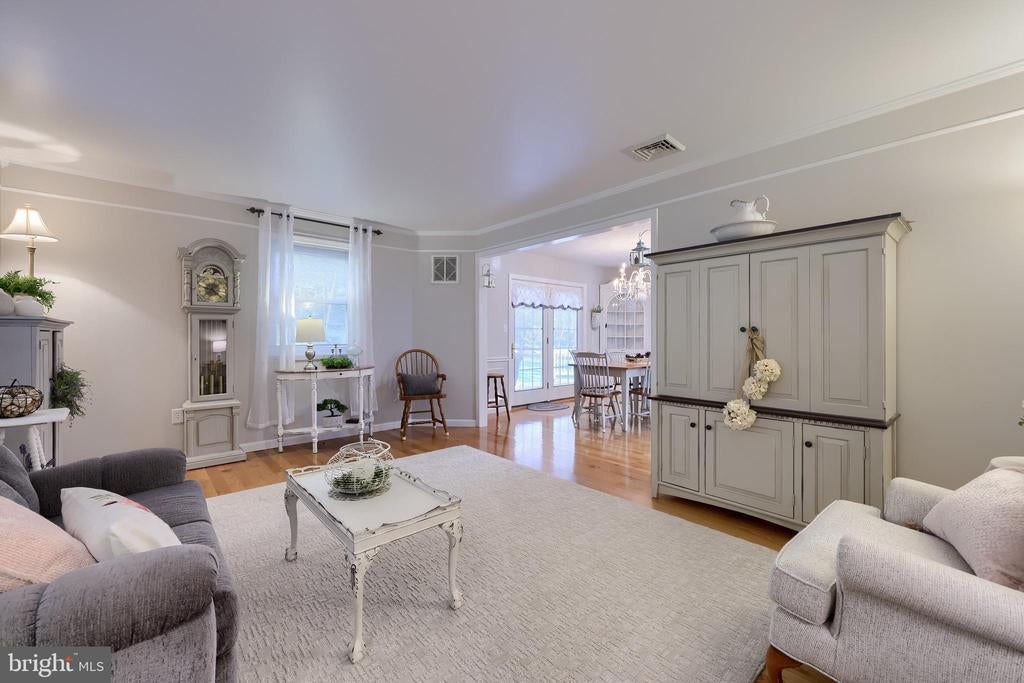 Beautifully maintained 4-bedroom, 1.5-bath two-story home in a secluded setting with many appealing features. From the front door the gleaming hardwood floor invites you home. The spacious kitchen is the heart of the home with amazing cabinet space and extensive corian countertops. An island conveniently brings additional counter space and seating for coffee breaks and snack time. Three windows at the sink flood the room with natural light and gives a view overlooking the backyard. The dining room is next to the kitchen with plenty of space. The opening from the dining room to the living room is perfectly placed to stretch the dining room table for large gatherings. On the other side of the kitchen the family room offers relaxing space perfectly sized to be cozy without being crowded. Recent flooring throughout the family room and adjoining sunroom. The sunroom showcases a vaulted ceiling with skylights and many windows for natural lighting and panoramic outdoor views. Outside multiple Trex decks offer expansive space for morning coffee, sunny afternoon relaxing, and entertaining guests. The finished basement is excellent space for games, reading and other activities, kept comfortable year round by a 2 year old mini-split system. The garage is a clean and unique bonus space, featuring a full second kitchen, laundry area, and durable epoxy floors—perfect for extended living space, a workshop, or entertaining. Two sheds offer ample storage, including one that has electric, is fully insulated, and heated. The yard is large and offers multiple areas for outdoor recreation.