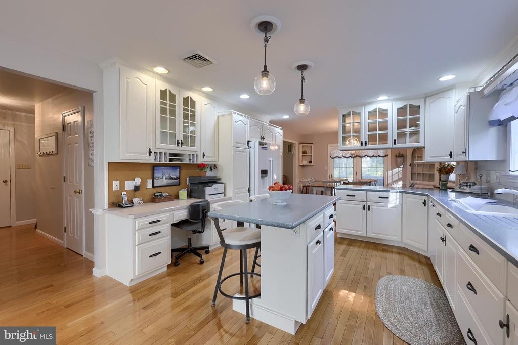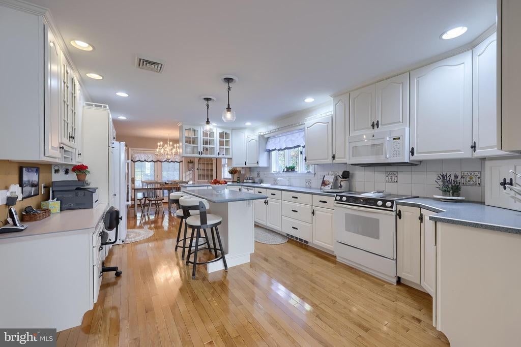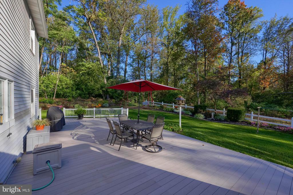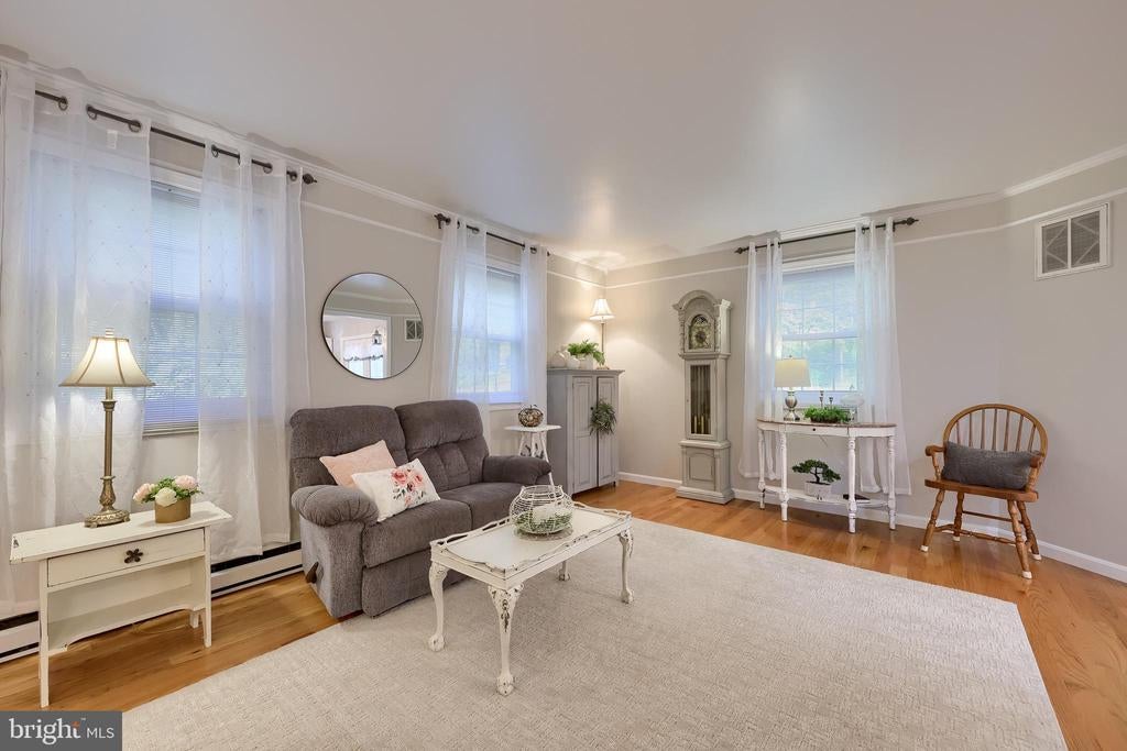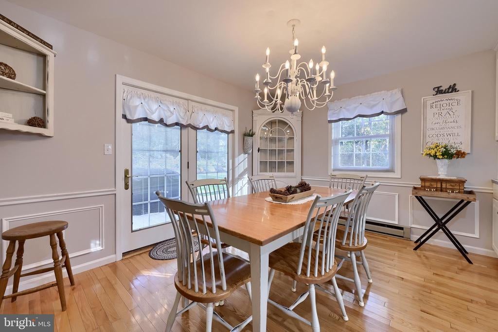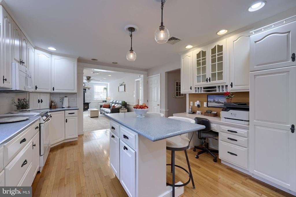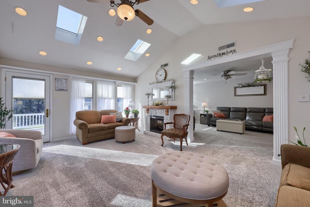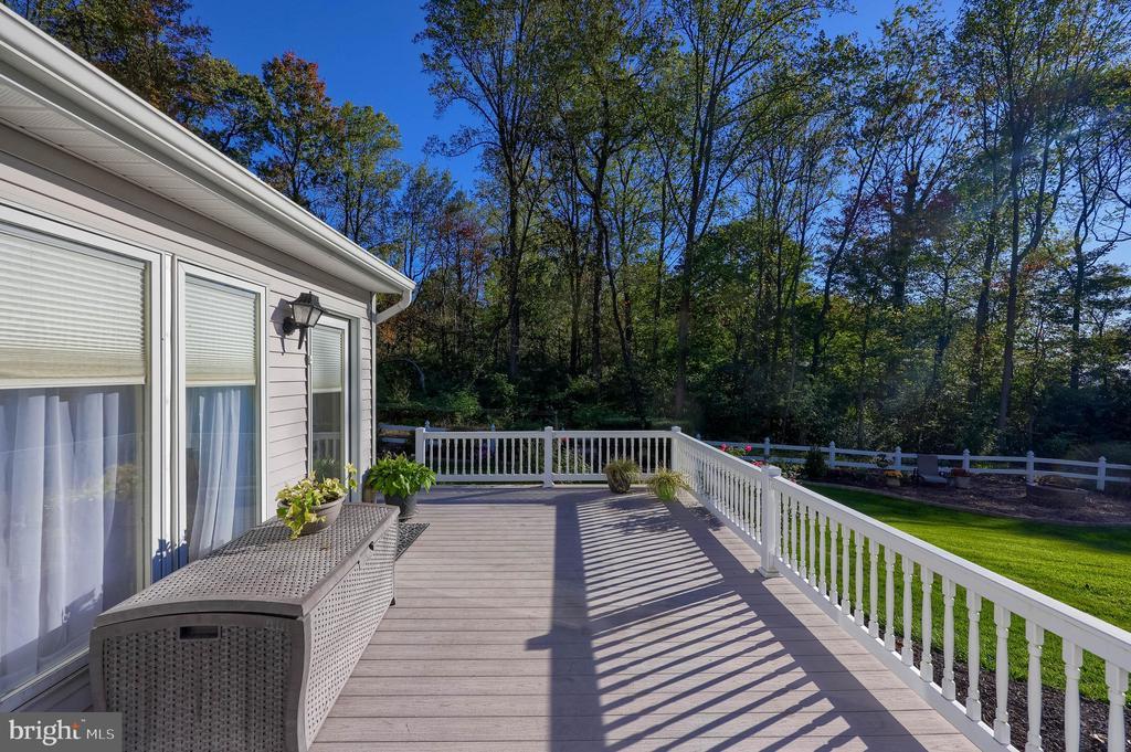 Beautifully maintained 4-bedroom, 1.5-bath two-story home in a secluded setting with many appealing features. From the front door the gleaming hardwood floor invites you home. The spacious kitchen is the heart of the home with amazing cabinet space and extensive corian countertops. An island conveniently brings additional counter space and seating for coffee breaks and snack time. Three windows at the sink flood the room with natural light and gives a view overlooking the backyard. The dining room is next to the kitchen with plenty of space. The opening from the dining room to the living room is perfectly placed to stretch the dining room table for large gatherings. On the other side of the kitchen the family room offers relaxing space perfectly sized to be cozy without being crowded. Recent flooring throughout the family room and adjoining sunroom. The sunroom showcases a vaulted ceiling with skylights and many windows for natural lighting and panoramic outdoor views. Outside multiple Trex decks offer expansive space for morning coffee, sunny afternoon relaxing, and entertaining guests. The finished basement is excellent space for games, reading and other activities, kept comfortable year round by a 2 year old mini-split system. The garage is a clean and unique bonus space, featuring a full second kitchen, laundry area, and durable epoxy floors—perfect for extended living space, a workshop, or entertaining. Two sheds offer ample storage, including one that has electric, is fully insulated, and heated. The yard is large and offers multiple areas for outdoor recreation.