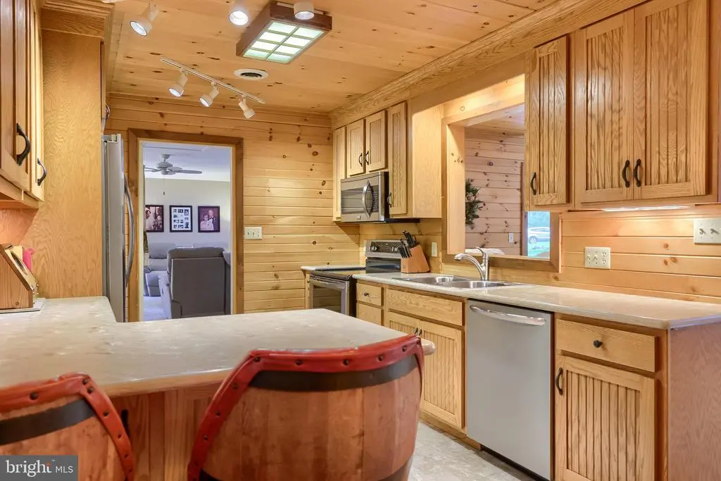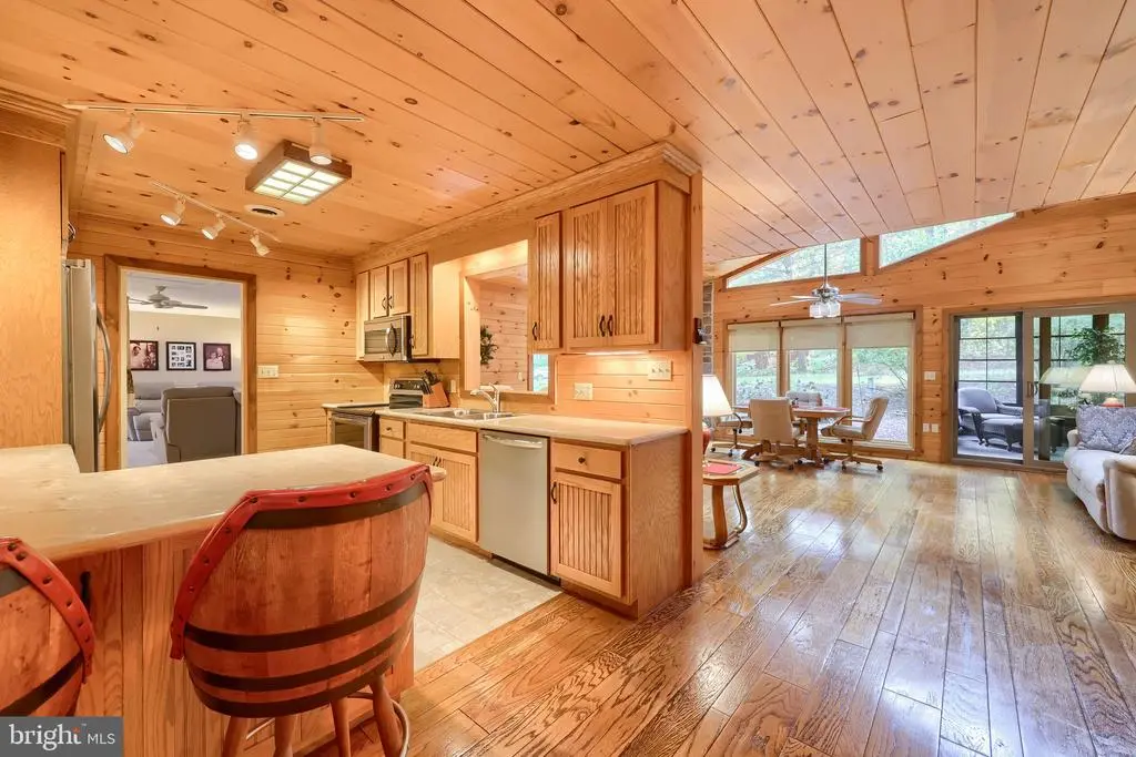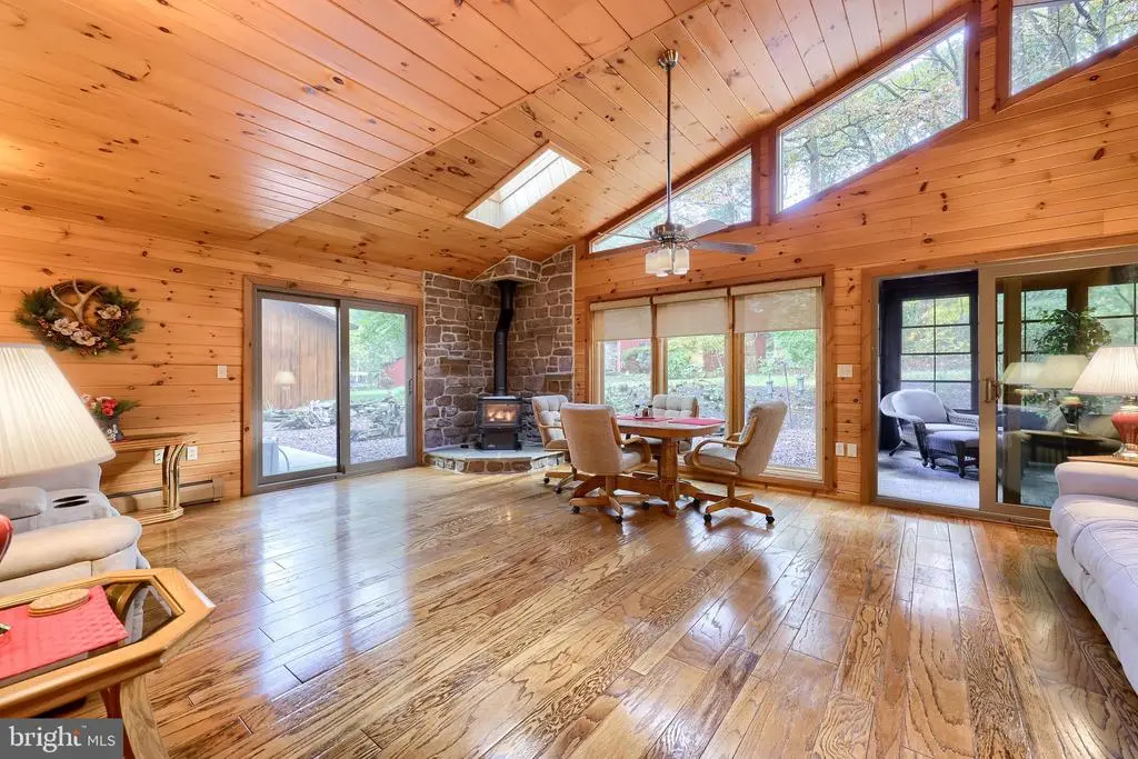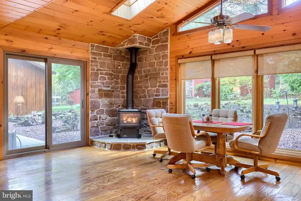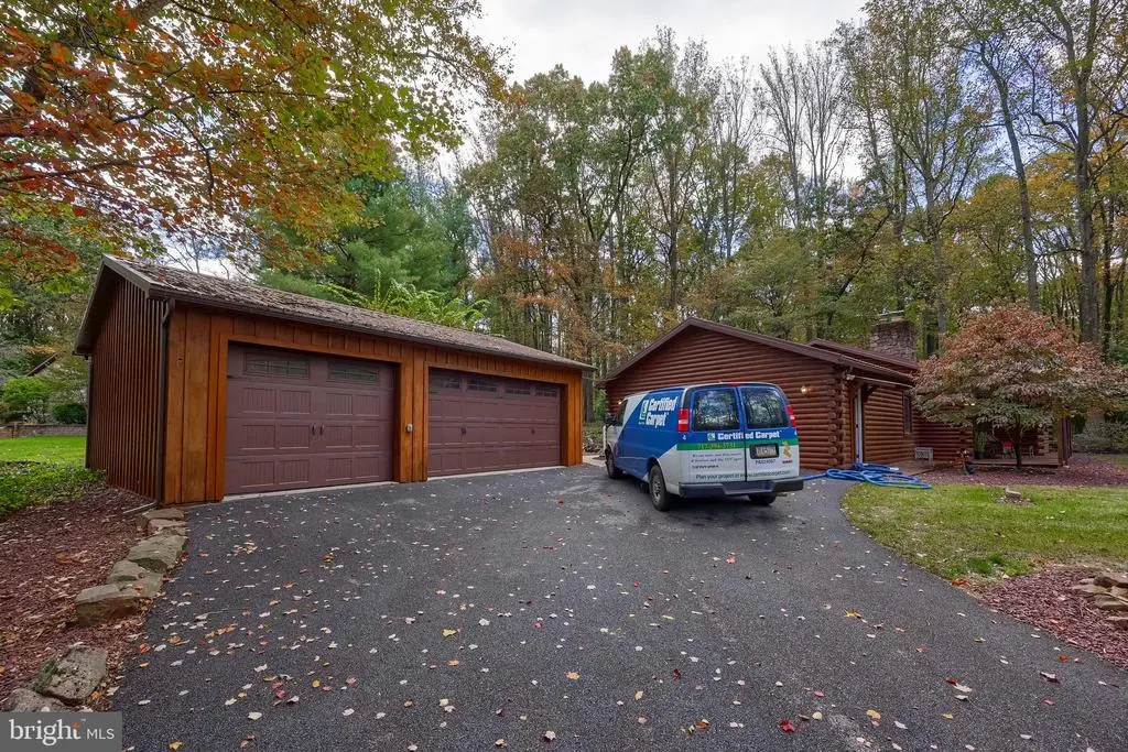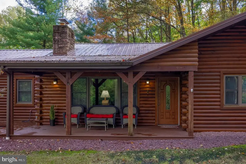 Every day can feel like a vacation when you enter your private retreat! Discover this inviting ranch-style log home nestled on a private lot at the end of a quiet cul-de-sac. Set on just over an acre and surrounded by nature, this magnificent property offers the perfect blend of rustic beauty and modern convenience. Inside, you’ll find a warm and welcoming interior with natural wood accents, varied ceiling heights, and a cozy, relaxed feel throughout. The home features 2 spacious bedrooms and 2 full baths, including one with a jetted soaking tub for unwinding after a long day (plus separate stall shower!) The floor plan includes a comfortable family room, a charming kitchen and dining area, and a convenient laundry space. The fireplaces will create the perfect cozy atmosphere on a chilly evening! Outdoors, enjoy the beautiful covered front porch or the stunning enclosed rear patio (11'6" x 20'6") with a vaulted ceiling, as you relax or entertain while admiring the gorgeous natural surroundings. Car enthusiasts and hobbyists will appreciate the 3-car detached garage providing plenty of space for vehicles, tools, or toys. Located just minutes from major access roads yet tucked away in a serene natural setting, this home offers the best of both worlds—quiet country living with easy commuter access. Updates by the most recent homeowners include: a new roof in 2017, a bathroom remodel in 2023, new gutters in 2019, and a new door and windows in 2014. *Propane tanks are leased* (Amerigas). Recorded driveway right-of-way in agent documents. Carpets professionally cleaned in Oct. 2025. Kindly remove shoes - or wear shoe covers when viewing this gorgeous home. UV light on the well, as well as a water treatment system. **This property is in excellent condition & is being sold as-is by the estate, complete with furnishings. Executor/family reserves the right to remove a few remaining items; however, the majority of the clean-out has already occurred.**