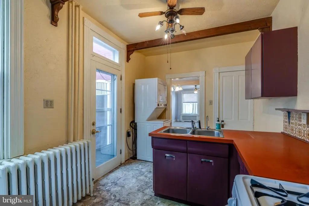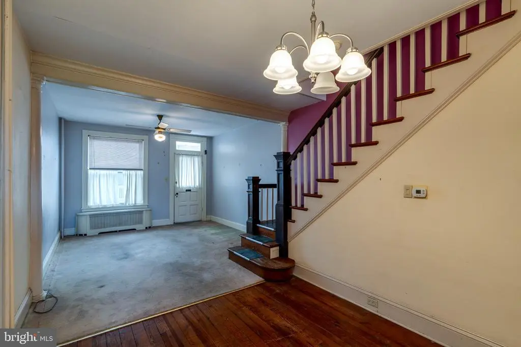Brimming with character and ready for your personal touch, this spacious 3-bedroom, 1-bath row home offers a fantastic opportunity to own in the heart of Lancaster City. With four levels of flexible living space and vintage architectural details throughout, this home is perfect for buyers looking to invest, renovate, or create their dream home from a solid foundation. Step through the covered front porch and into the main level, where you’re greeted by a traditional living and dining room layout, featuring hardwood floors, oversized windows, original millwork, and a striking staircase with detailed woodwork. The kitchen, located at the rear of the home, includes ample cabinetry, a gas range, vintage tile backsplash, and a convenient walk-out to the private rear yard. A stacked washer and dryer are thoughtfully integrated into the kitchen area for added practicality. Upstairs, the second floor hosts three generously sized bedrooms and a full bath with updated tile work, soaking tub, and classic finishes. The third floor offers a full-sized walk-up attic with significant potential for a fourth bedroom, studio, or bonus space, depending on your vision. Down below, a large unfinished basement provides excellent storage or workshop options. With 1,742 sq ft of interior space across four levels, efficient gas heating, charming cast iron radiators and a walkable city location near parks, markets, and public transit, this home is rich in potential, unique character, and full of possibilities. Whether you're a first-time buyer, investor, or renovator, this property offers a fantastic canvas in a vibrant, historic neighborhood.