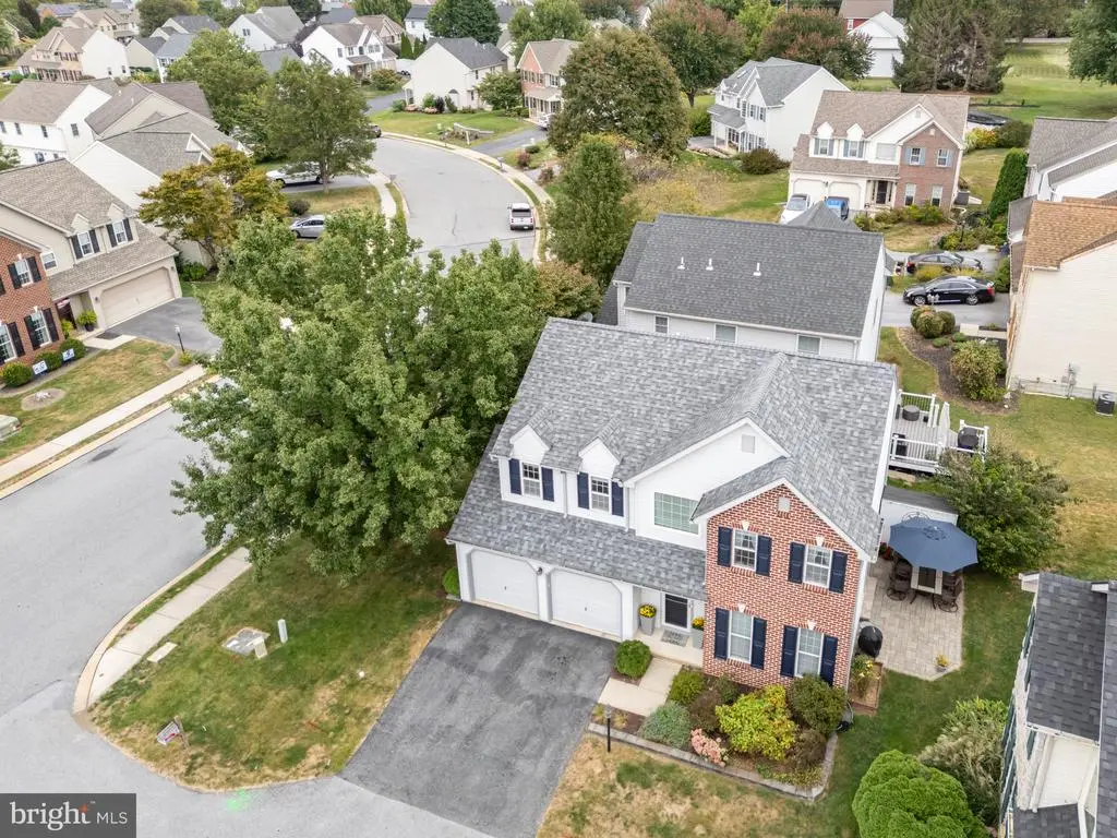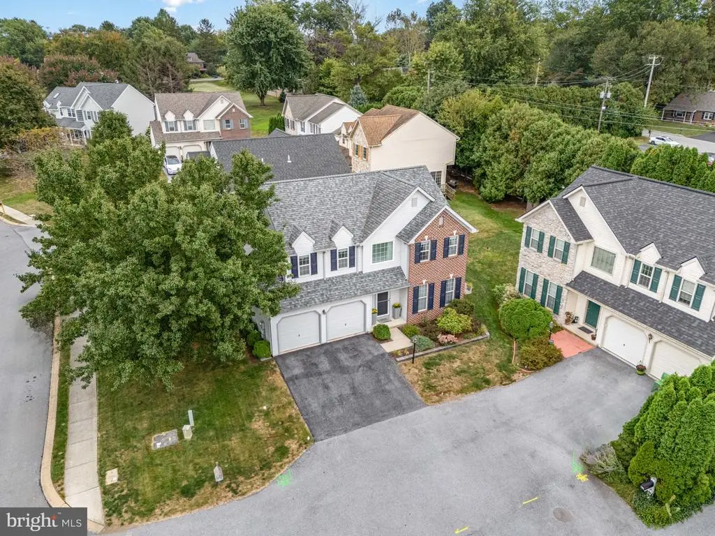 Tucked away on a quiet cul-de-sac in the desirable Apple Croft neighborhood, this 4-bedroom, 2.5-bath home offers charm, updates, and everyday convenience just a stone’s throw from the Lampeter-Strasburg schools. Built in 2000 and lovingly maintained, this corner-lot property features mature trees, lush landscaping, and lovely sidewalks that enhance the welcoming community feel. Step inside to find open, light-filled living spaces. The living room is warm and inviting, filled with natural light streaming through tall windows. A sliding door frames a lovely view of the garden and patio. The new flooring gives the space a fresh, polished look. The open layout flows seamlessly into the kitchen, making it easy to enjoy gatherings with family and friends. The kitchen shines with new quartz countertops and elegant cabinetry. A dining room with updated lighting flows easily for entertaining, and just off to the side is a convenient powder room. The new back and side patios overlook the peaceful yard. Upstairs, the spacious primary suite features plush carpet, double closets, and an ensuite bath with a tub/shower combination. Three additional bedrooms are bright, airy, and generously sized, sharing a large full bathroom. The unfinished basement offers a laundry area, abundant storage, and plenty of potential to create a family room, rec room, or home office. The attached 2-car garage and an outdoor shed provide practical storage for vehicles and lawn equipment. A new roof (2019), furnace (2019), A/C (2016), hot water heater (2016), and microwave and garbage disposal (2025) bring peace of mind, while fresh paint, new flooring throughout, and updated lighting add modern style and convenience. This Apple Croft home blends updates, comfort, and community—a rare find in a prime Lancaster location.
