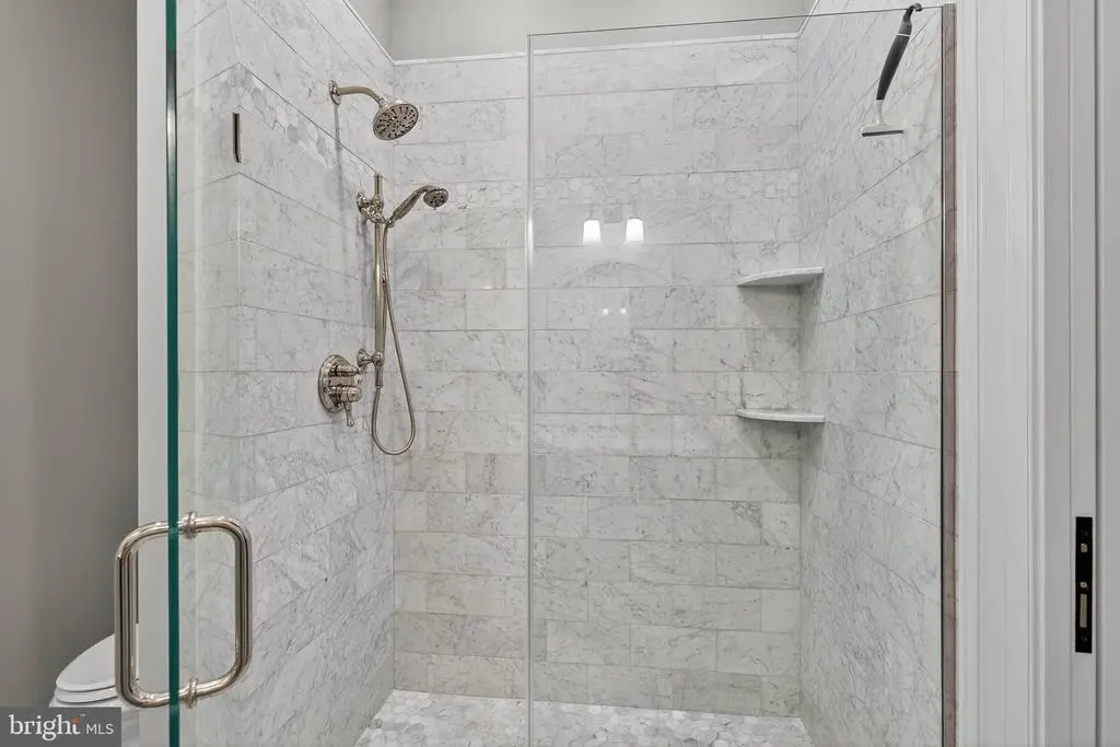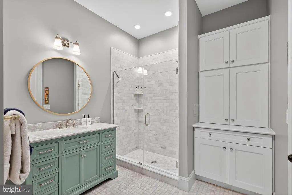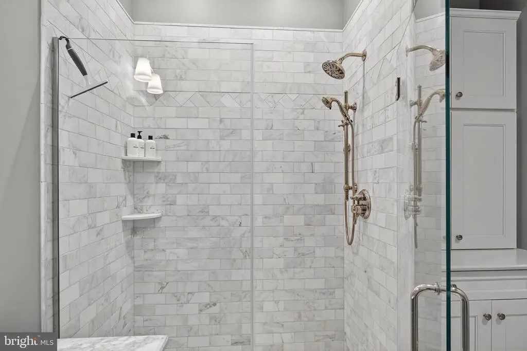 Bathroom - Walk-In Shower, Built-Ins, Crown Moldings, Entry Level Bedroom, Primary Bath(s), Recessed Lighting, Walk-in Closet(s), Window Treatments, Wood Floors