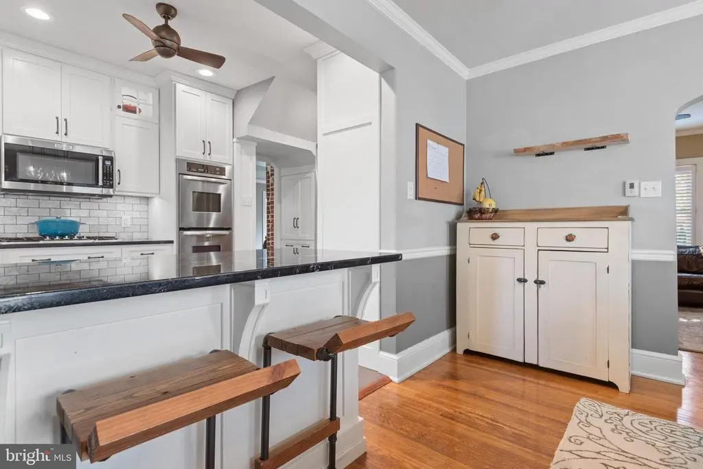 Built-Ins, Ceiling Fan(s), Crown Moldings, Pantry, Upgraded Countertops, Window Treatments, Wood Floors