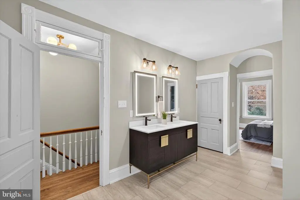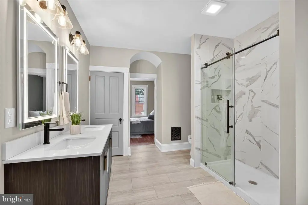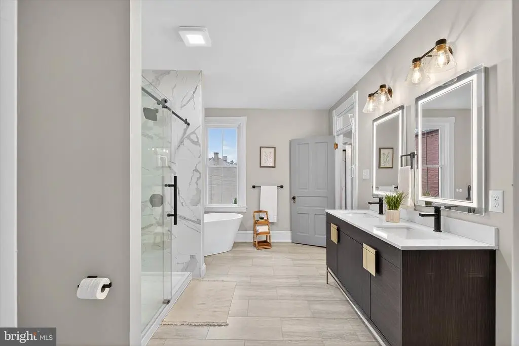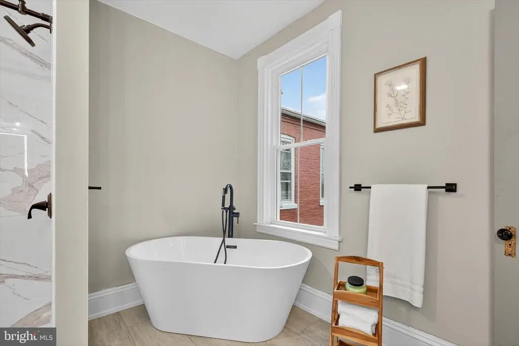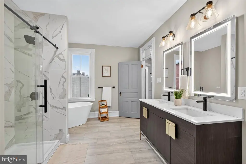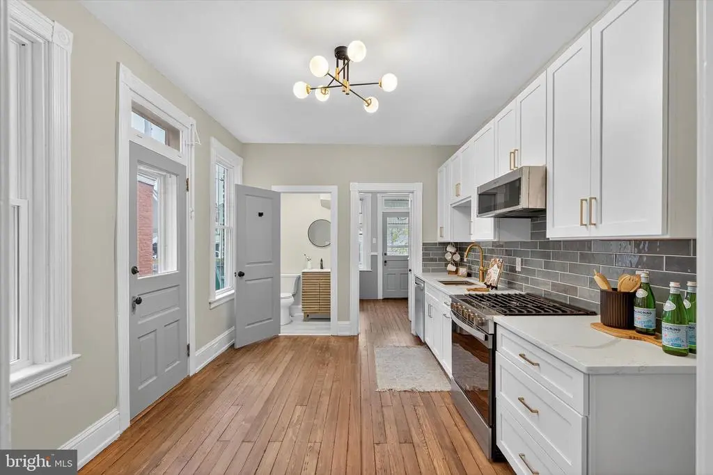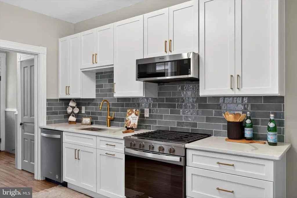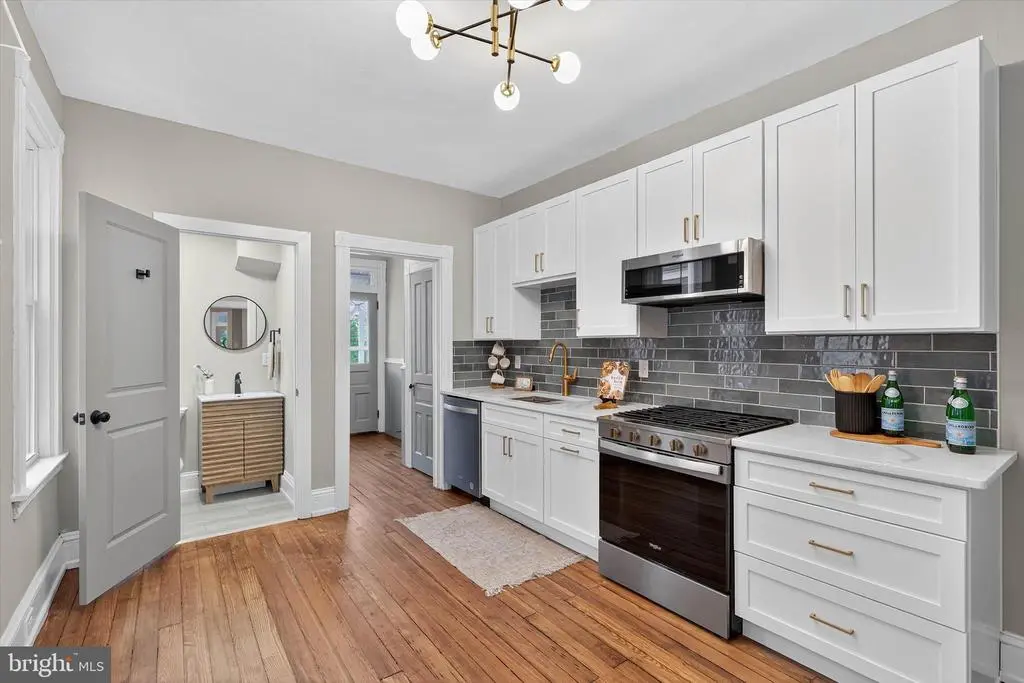 Stunning Fully Renovated Townhome in Lancaster City’s Desirable West End! This spacious, move-in-ready home boasts incredible curb appeal and a 10/10 walk score, just steps from F&M University, Downtown Lancaster, and everything the West End has to offer. Enjoy two private off-street parking spaces and a full covered front porch that invites you inside. The interior showcases beautiful hardwood flooring throughout, soaring 9-foot ceilings on the main floor, and refinished original trim that highlights the home's classic architecture. The main level features a convenient half bath and a custom-designed kitchen with brand-new white cabinetry, quartz countertops, a tiled backsplash, gold fixtures, and new stainless steel appliances- including natural gas cooking. Upstairs, the spacious primary suite offers a luxurious spa-like bathroom with luxury vinyl tile flooring, a tiled walk-in shower with glass door, double vanity, and soaking tub. The main bathroom has also been beautifully refinished with new LVT flooring, a new vanity, and a tiled shower. Two additional large bedrooms feature refinished hardwood floors, with the rear bedroom opening to a private balcony overlooking the backyard. Additional highlights include newer natural gas heat, replacement windows, and central A/C. The large, walkout basement provides easy access to the backyard and offers plenty of storage additional living space potential. A rare find with one-of-a-kind finishes, this home perfectly blends timeless Lancaster charm with modern luxury!