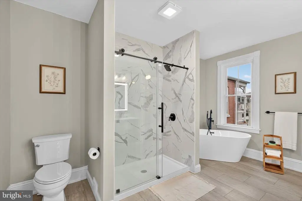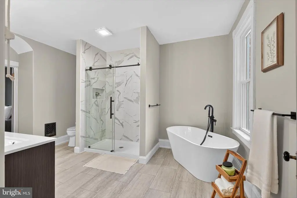 Bathroom - Soaking Tub, Bathroom - Walk-In Shower, Primary Bath(s), Upgraded Countertops, Wood Floors