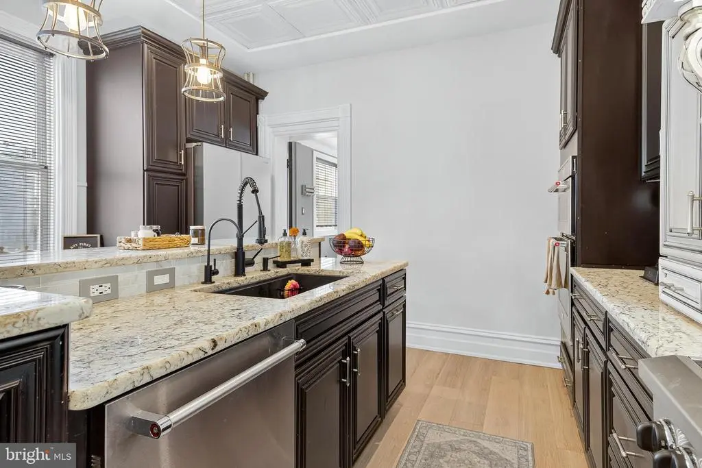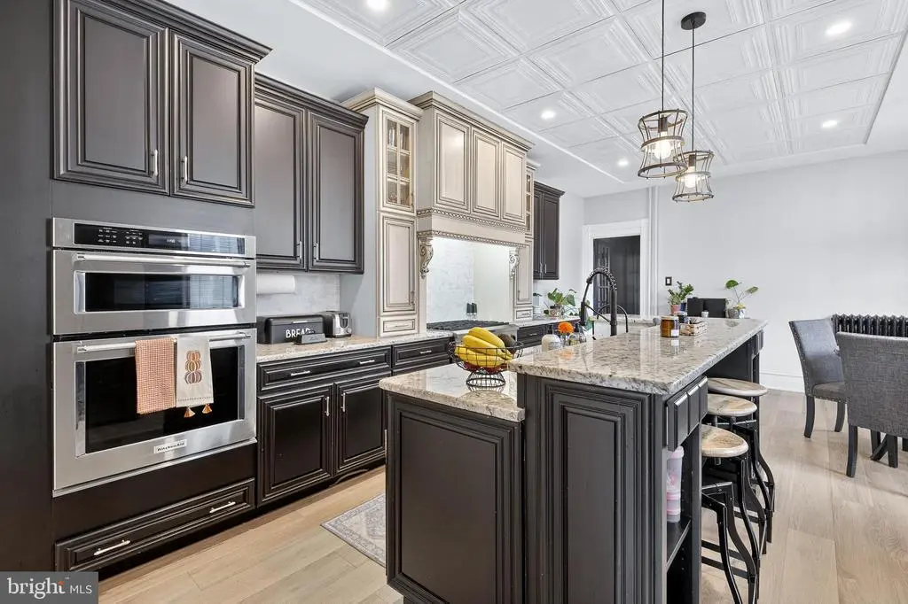 One of a kind with timeless character! Step into a perfect blend of historic charm and modern comfort in this beautifully maintained 1910 twin/semi-detached home. Offering 2,499 sq ft of inviting living space, it’s thoughtfully updated while preserving its original elegance. Inside, enjoy luxury plank flooring (with natural wood underneath), crown moldings, and original solid-wood doors with vintage skeleton keys. French doors accent the hallway, adding a touch of grace and sophistication. The custom eat-in kitchen features a large island, high-end stainless-steel appliances—including a six-burner stove and convection oven—a newly installed reverse-osmosis water system, and a dedicated spigot with filtered drinking water. A tankless water heater ensures endless hot water, while a main-floor laundry and convenient half bath add everyday ease. Upstairs, four spacious bedrooms are filled with natural light, while the unfinished basement offers room for future possibilities. Outside, unwind in your fenced backyard oasis complete with a deck, brick firepit, and plenty of space to make your own. The detached garage adds extra convenience and peace of mind. Nestled near public transportation and local amenities, this home combines suburban tranquility with city accessibility. A truly special property where history, comfort, and style come together beautifully.