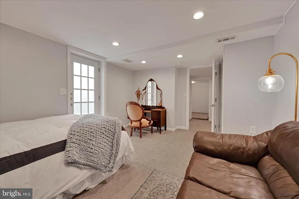 Carpet, Chair Railings, Crown Moldings, Curved Staircase, Entry Level Bedroom, Recessed Lighting