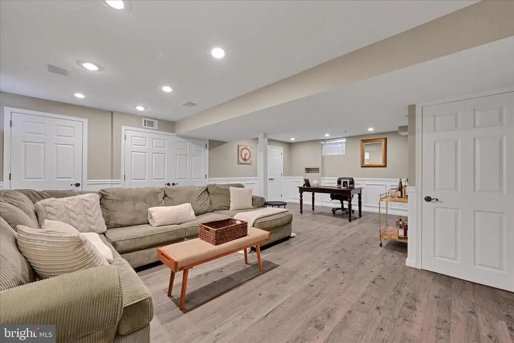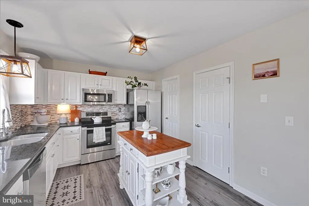 Fantastic end townhouse with a one car garage. This home has seen a complete makeover with new paint, luxury vinyl plank floors throughout the finished basement, kitchen, living room and bathrooms. New light fixtures and shiplap add to this stylish home. A rear deck and patio combination look over the large backyard that backs up to open land. There is a shed to store your mower and garden tools. The development offers a play area and room for the dog to run and is convenient to shopping and major routes. A new roof in 2019 offers peace of mind for years to come. Seller prefers settlement date on January 19, 2026