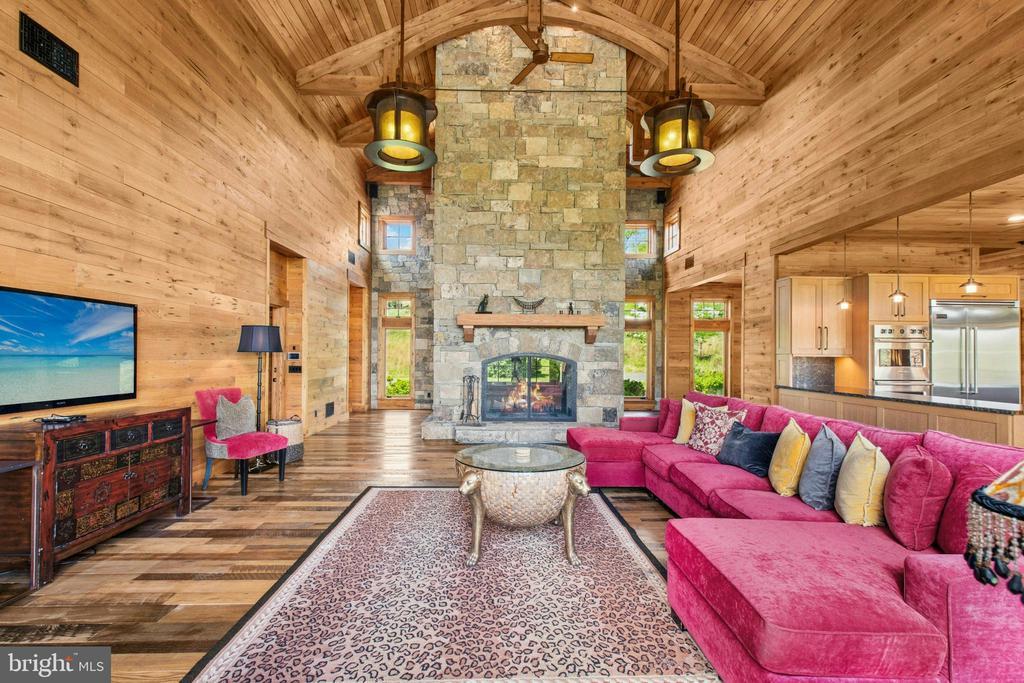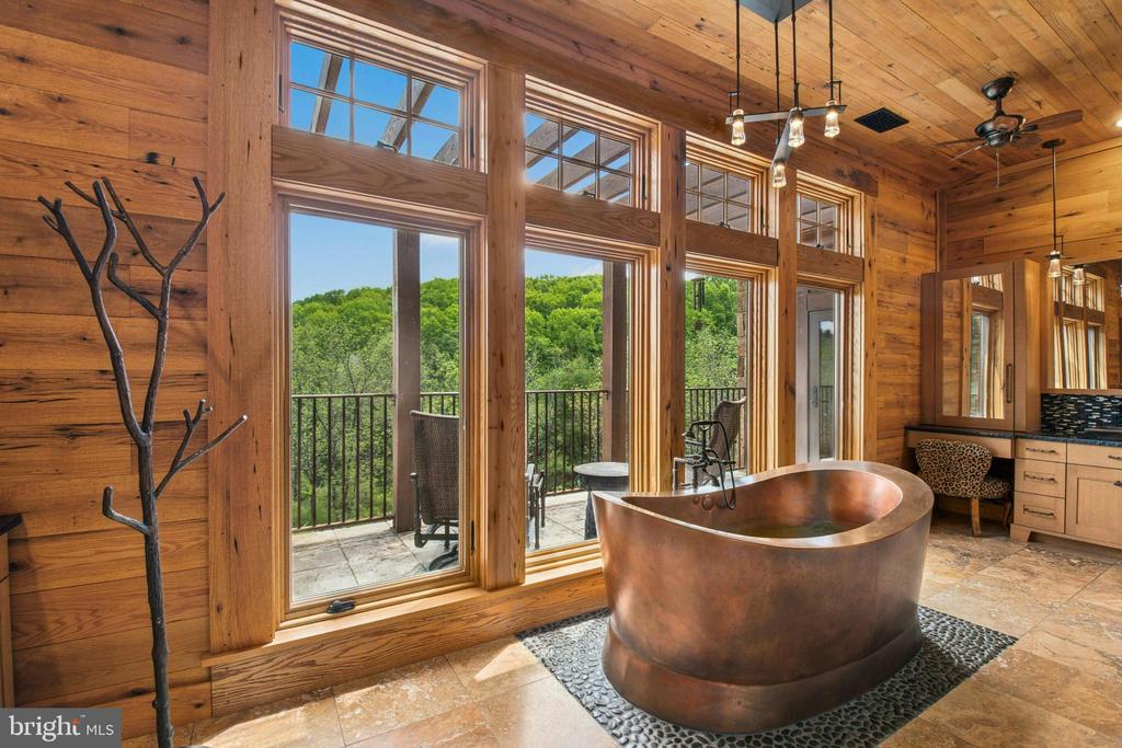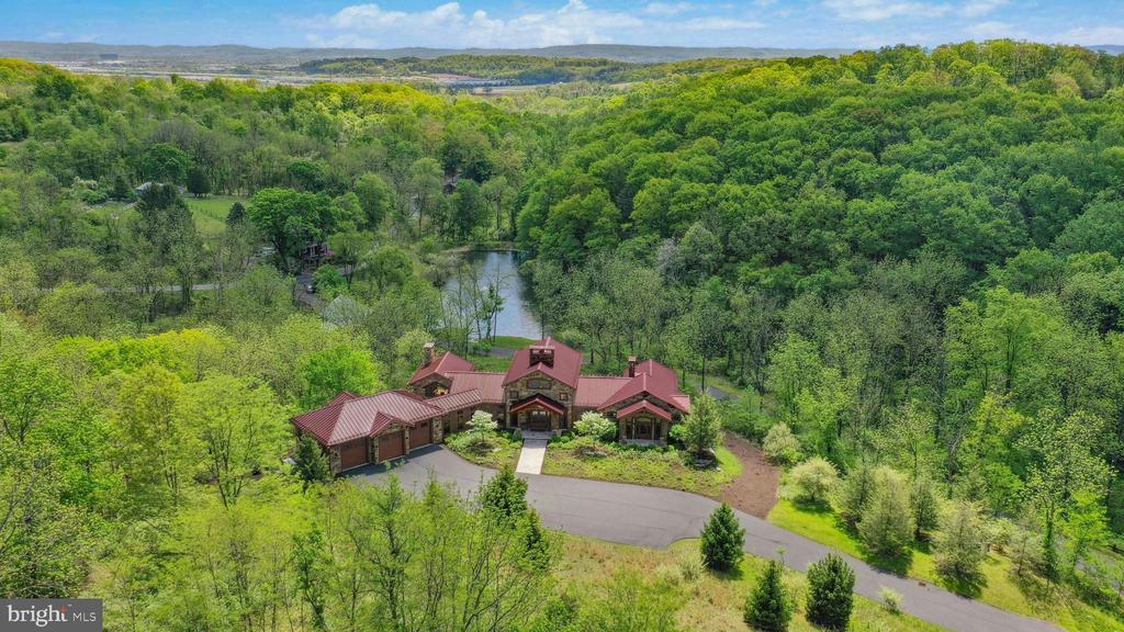 Captivating panoramas unfold through walls of glass, perfectly positioned in a stunning array of interior and exterior spaces. Surrounded by 53 acres of woods, wildflower fields, multiple streams, lake, and pond, the distinctive design creates one of the most noteworthy properties to ever have come on the market. Spectacular architectural elements and a unique composition of finishes and features are executed with exceptional craftsmanship and a timeless design, blending sophisticated details with contemporary vaulted spaces in a whimsical and inviting ambience. A fabulous interior with reclaimed wood produces vaulted spaces that will take your breath away. This exceptional house presents marvelous architectural features at every turn, dramatically combining space, light, and imagination. The custom design captures the elegant interior one has come to expect in estate quality properties, where exquisite workmanship and detailed execution define each room. The extraordinary great room, enhanced by walls of south-facing windows, has arched king post timber trusses, reclaimed oak ceiling, floor-to-ceiling, two-sided stone fireplace and magnificent custom lighting designed to fit the scale of the soaring spaces. Here, indoor to outdoor living has been reimagined, with rooms of grand proportions that flow into each other, boasting all the accoutrements that make for ease of living. The state-of-the-art kitchen has only the finest of appliances and custom cabinetry and opens to the sights and sounds of a unique natural setting, with an outdoor kitchen, multiple terraces, courtyard with spa, and fireside seating perfect for hosting significant gatherings with ease. The primary retreat, with an exquisite bath and dual wardrobe rooms, opens to a secluded terrace overlooking a custom arched footbridge connecting the home to the converted stone barn and large pond. Enticing one to embrace the acreage, there are miles of walking trails, allowing for long hikes without ever leaving the property. Curated to provide an estate that offers the ultimate in relaxation and rejuvenation, there are multiple venues to explore. Among this is the converted stone barn, offering varied opportunities for extended use. Heated and cooled, with an upper floor of vaulted space, the barn has currently been used as a studio and office, offering a significant nod to its original character. This space is an artistic tableau, inviting all to re-invent a purpose beyond the original. Relax…invent…write…and create, overlooking the lake’s inspiration and the beauty of all that is Peaceful Valley. These estates are rare now, but this gracious home is an example of one of today’s best properties, offering full-time or part-time living at one’s whim.
