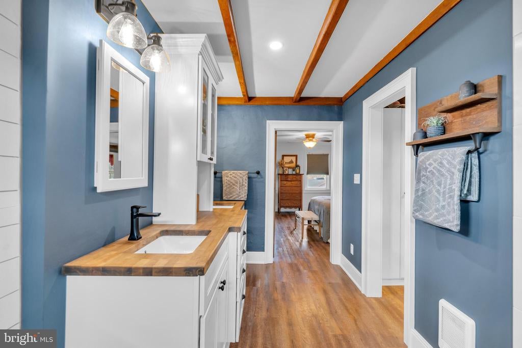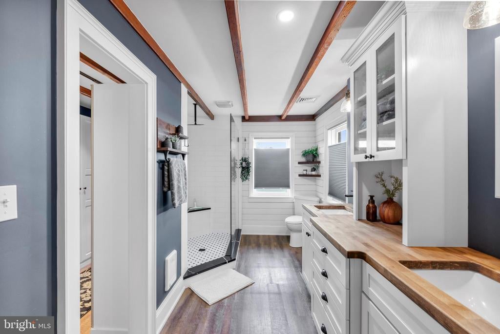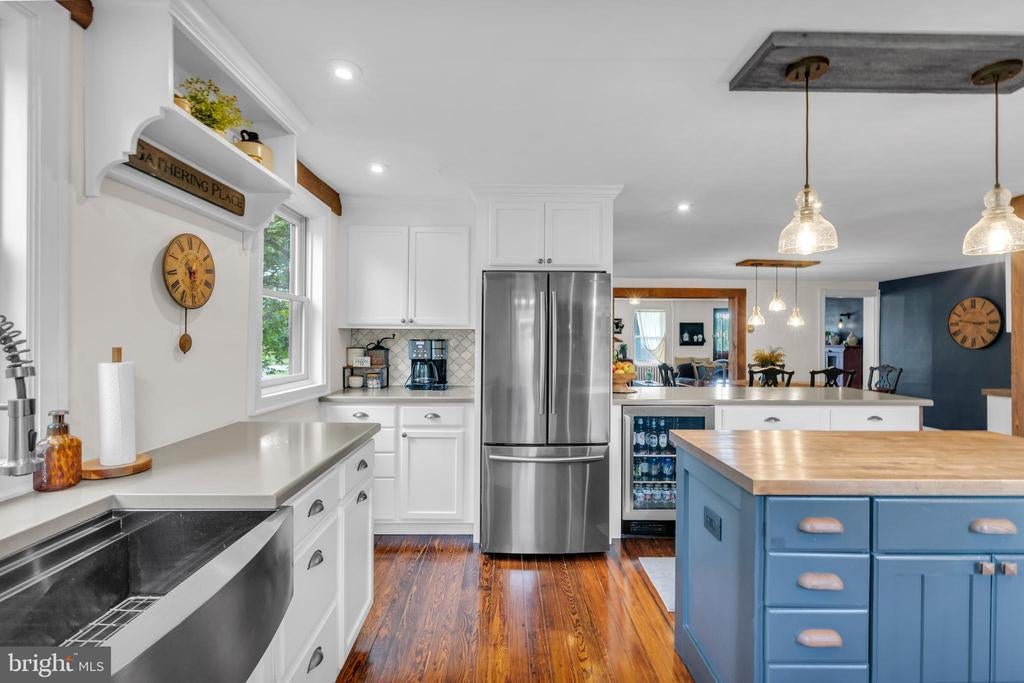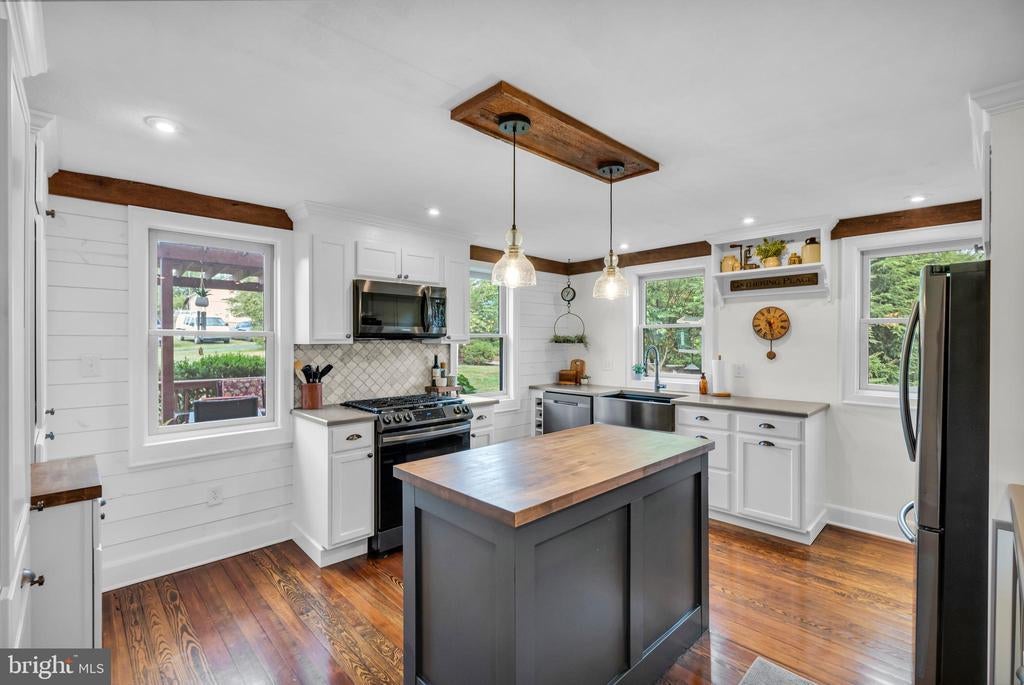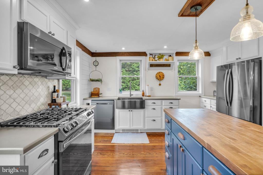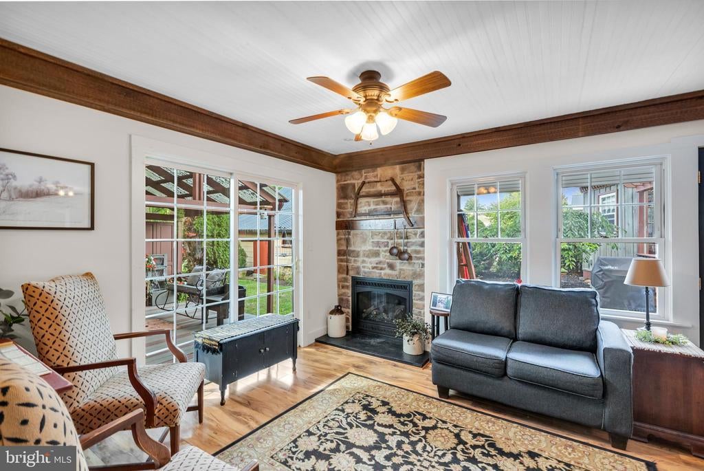 Classic farmhouse charm meets modern comfort in this beautifully renovated 4-bedroom, 2.5-bath stone farmhouse set on just over an acre. Timeless character—original hardwood floors, multiple fireplaces, and 100-year-old beams and wood reclaimed from the property’s own historic barn—blends seamlessly with thoughtful updates for today’s lifestyle. The bright custom kitchen features a center island with butcher-block countertop, stainless appliances, farmhouse sink and stylish tile backsplash. A spacious first floor offers exceptional living space with a living room, family room, den, dedicated office, formal dining room and a sunny breakfast room—plus first-floor laundry for everyday convenience. The primary suite provides a peaceful retreat with a barn-door entry to a spa-style bath. The master shower was constructed with a full Schluter waterproofing system and finished with diamond-infused protective coated glass, ensuring durability and easy maintenance. All bedrooms are generously sized and the remaining baths are tastefully updated. Outdoor living is truly magical, featuring two expansive decks for entertaining, a whimsical she-shed reading nook, and a new workshop ideal for hobbies, crafts or light projects. Several classic outbuildings and open yard space make this property a natural fit for hobbyists or those pursuing a homesteading lifestyle—perfect for gardening, small livestock, or creative pursuits. Surrounded by rolling farmland yet close to local amenities, this property offers a rare combination of privacy, versatility, and modern comfort—all within the highly regarded Northwestern Lehigh School District.