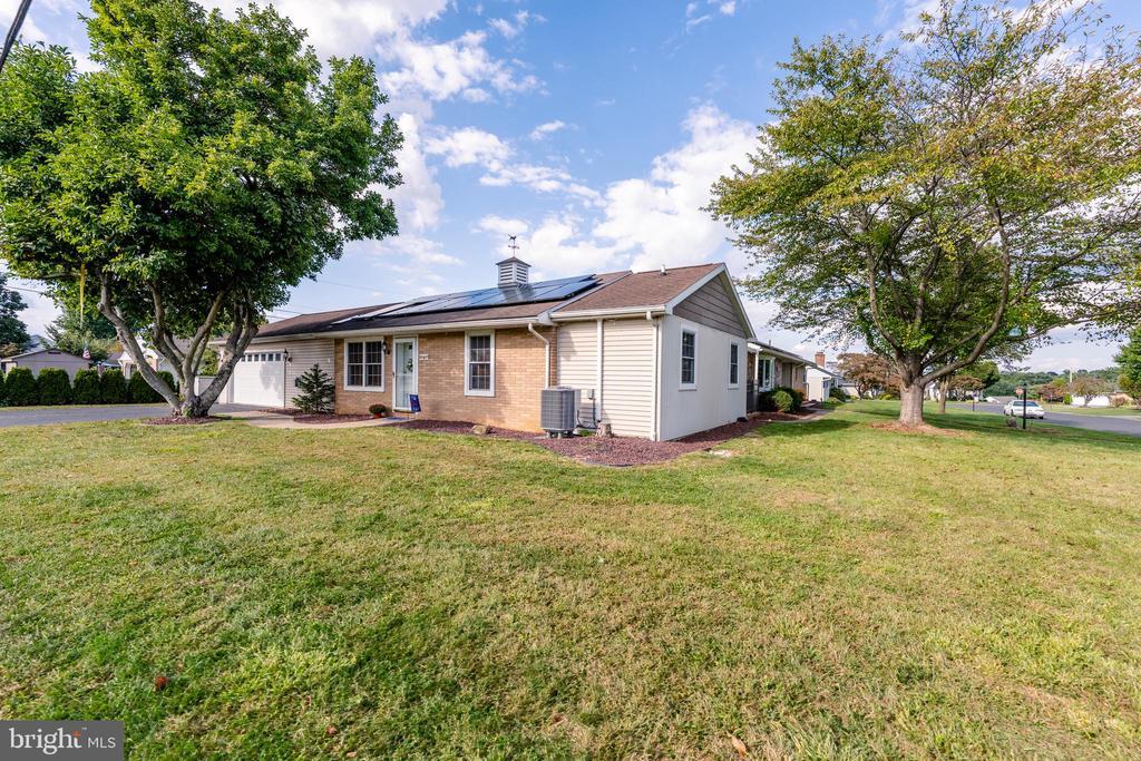 Unique opportunity for one floor living at its best! Welcome to this sprawling brick /stone ranch style home that combines comfort, functionality and flexibility on a lovely corner lot. An adjoining residence expands possibilities, featuring 1-2 BR, open-concept floor plan, laundry, propane fireplace, H/W floors, & fully equipped kitchen. Its own living space, and private entrance-—perfect for multi-generational living, visiting guests, studio or office retreat. Main residence offers an open floor plan designed for easy single -level living 3-BR, 2.5 BTH that welcomes you with a spacious living room with FP, large bay window with views of the mountains, DR, and a versatile office/den featuring French doors and built-ins. The kitchen boasts a smart, functional layout. Hardwood floors flow throughout the home for easy care and timeless style. The primary suite offers a modern ensuite bath and an expansive walk-in closet, while two additional bedrooms provide plenty of comfort and space. Enjoy year-round living with a sun-filled 3-season room, direct access to a finished basement. It is a rare and valuable addition and is both private and seamlessly connected. Step outside to a stone patio w/backyard framed by mature arborvitae—your own retreat for relaxing or entertaining. Energy-saving owned solar panels, central air, and dual heating systems ensure comfort & efficiency throughout the year. Oversized 2-car garage. 1washer 1 dryer included. Home Warranty. Clear CO