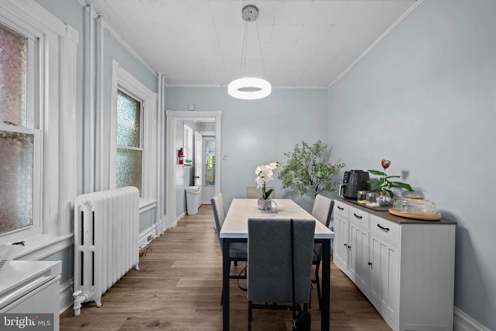 Welcome to this charming 3-bedroom row house featuring a perfect blend of comfort and convenience. Enjoy a bright living space with laminate/vinyl resilient floors on the main level, hardwood flooring upstairs, and a tiled bathroom for easy maintenance. The updated kitchen boasts stainless steel appliances, ideal for any home chef. Step outside to your private yard, front porch with epoxy flooring, or make use of the garage and basement laundry area. Conveniently located near major highways, hospitals, supermarkets, and more, this home offers unbeatable accessibility in a vibrant central location!