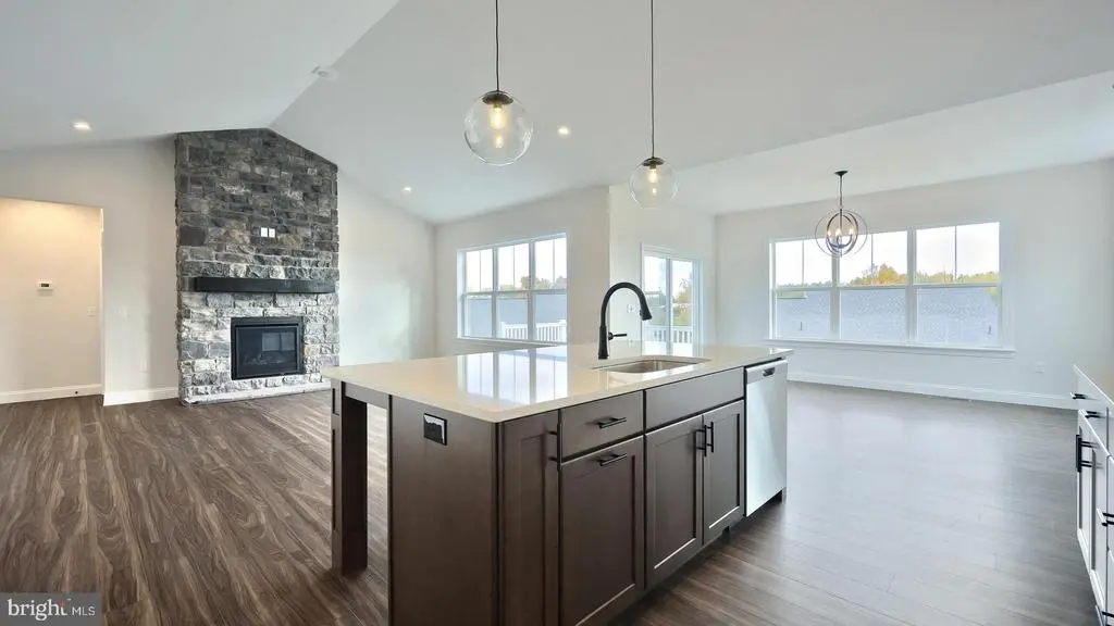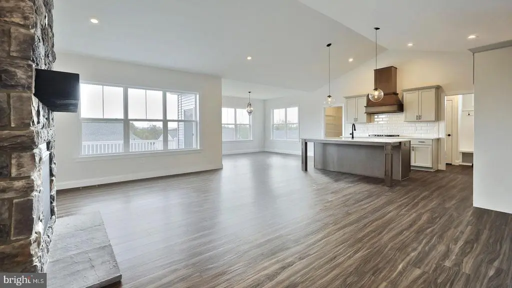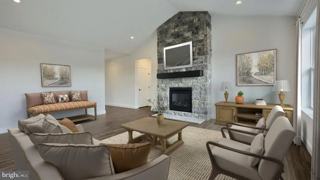 This charming, 1-story home in our Sweetbriar 55+ community features a welcoming front porch and a 2-car garage with mudroom entry. Stylish vinyl plank flooring flows throughout the main living areas. A carpeted study, secondary bedroom, and a full bathroom are found to the front of the home. The great room, warmed by a gas fireplace with floor-to-ceiling stone, shares a cathedral ceiling with the kitchen. The kitchen is well-appointed with enhanced cabinetry and appliances, quartz countertops with a tile backsplash, and a large pantry. Sliding glass doors in the dining area provide plenty of natural light and access to the rear composite deck. Tucked quietly to the back of the home, the spacious owner’s suite includes a private bathroom with a tile shower, double bowl vanity, and an expansive closet.