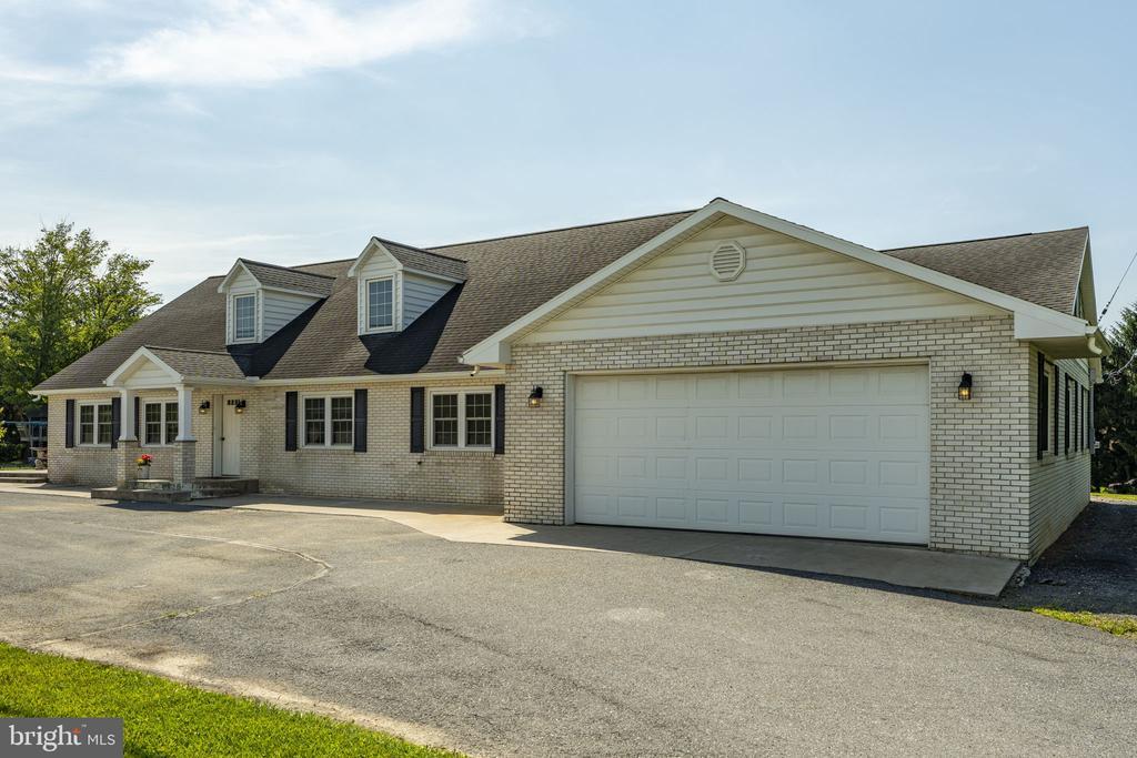 Spacious home featuring 3 bedrooms and 2 bathrooms on the main level, plus an unfinished upper level with potential for 2 additional bedrooms and 1 bath. The open-concept kitchen, dining, and living area is perfect for entertaining. The primary bathroom includes a soaking tub and a walk-in shower. The main level was completely remodeled in 2015 with upgrades including radiant natural gas floor heat, new electrical, roof, furnace, A/C, windows, and doors. The kitchen boasts granite countertops and modern finishes. Enjoy a heated 2-car garage, plus an additional attached garage at the rear of the home. A large circular driveway provides ample parking. Situated on over 4 acres of flat, cleared land with a tree-lined yard and a covered back porch, this home is ideal for relaxing or hosting gatherings. Property is zoned C-2 Highway Commercial with many possible uses including retail business, school, daycare, office, bank, car business, hotel, and more.