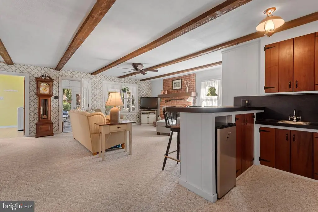 Attic, Bar, Bathroom - Walk-In Shower, Built-Ins, Ceiling Fan(s), Exposed Beams, Formal/Separate Dining Room, Walk-in Closet(s), Wet/Dry Bar, Window Treatments, Wood Floors