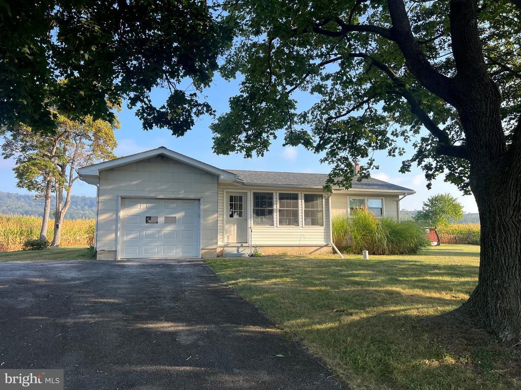 This charming one-story home is nestled in a beautiful setting, surrounded by preserved farmland, with a stunning view of the Blue Mountain range. This home offers ease of first floor living the great layout with original hardwoods makes this home perfect for a refresh. The front porch is enclosed offering a welcoming area for guests, leading into the living room. Off the living room is the spacious kitchen and dining which opens to the gorgeous, bright and airy sunroom! The sunroom's abundant windows face the large, private backyard which is surrounded by preserved farmland. The quiet setting of this .50 acre with views of the farmland and mountains is ideal for the buyer who wants to feel away from it all without being far from the needed amenities. Minutes from I-78, Rt 22, and I-81 allow for a quick commute to Harrisburg, Reading, Lancaster, Lebanon, and Hershey. New Roof 2022 Property is sold As Is. Schedule your showing today. Multiple offers received. Offer deadline is set for 10/1 at 7pm.