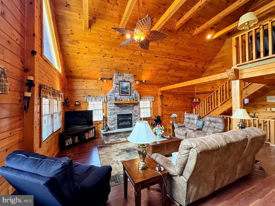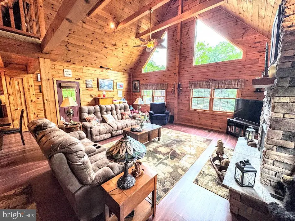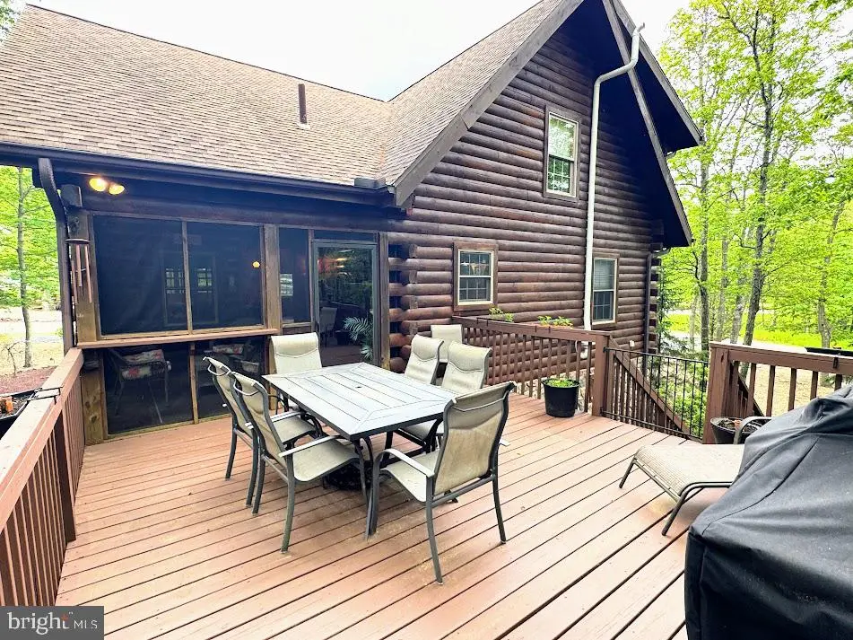 ALL LOG HOME ENTHUSIASTS, THIS QUINTESSENTIAL, COZY LOG HOME IS JUST WHAT YOUR LOOKING FOR ! IT'S THE PERFECT MOUNTAIN RETREAT HOME LOCATED IN THE 4 SEASON , GATED COMMUNITY OF EAGLE ROCK RESORT, NESTLED IN THE BLUE MOUNTAINS OF PA. Located on a corner lot, enjoy the peaceful surrounding nature, from the screened in porch, deck, or your hot tub. This 3 bed, 3 bath home features; open concept living , vaulted beamed ceilings in LR, stone FP in LR, hot tub, screened in porch, granite counters and island in the kitchen and so much more. Enjoy the 4 season amenities that Eagle Rock has to offer; 2 golf courses, lake with beach, indoor/outdoor pools, tennis, pickleball and basketball courts including a full , indoor basketball court, bocce ball pavillion, gym, spa , equestrian center and so much more!