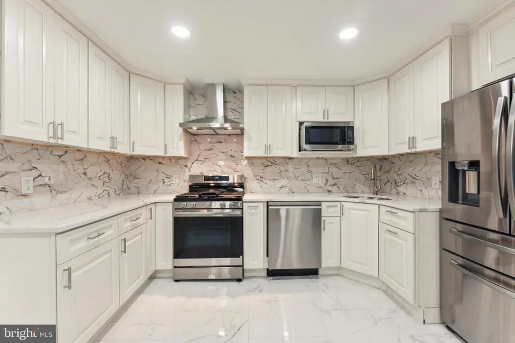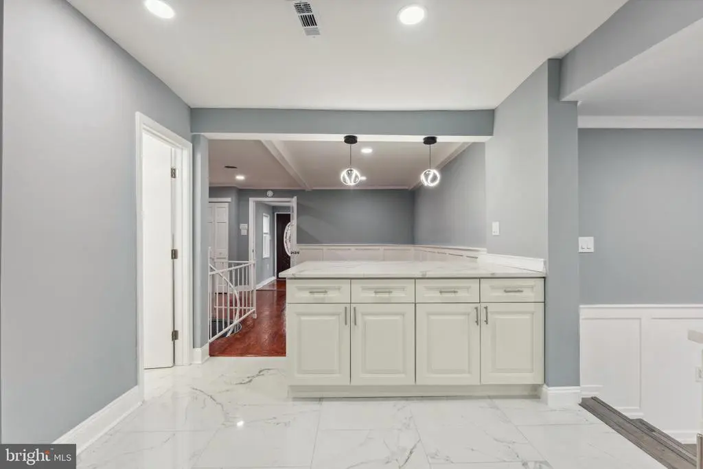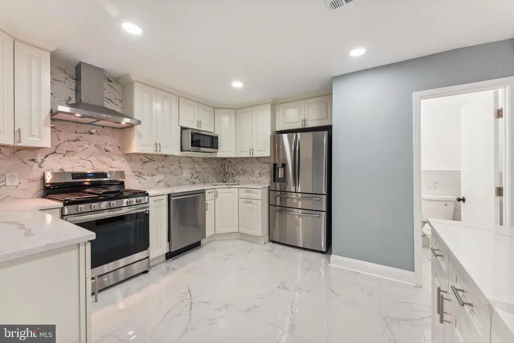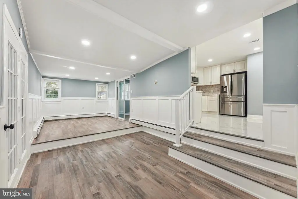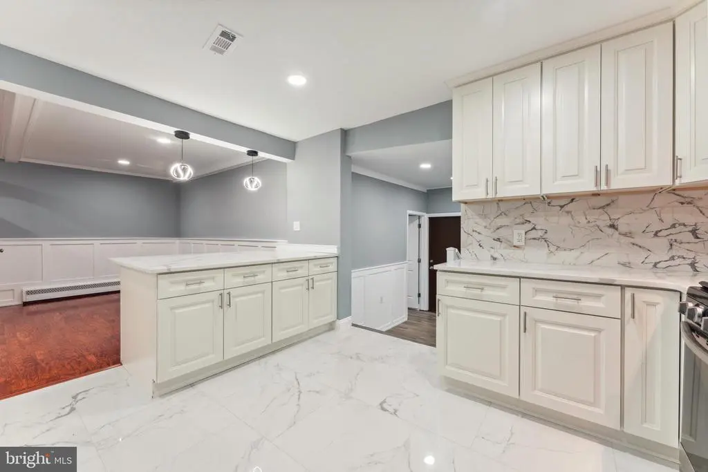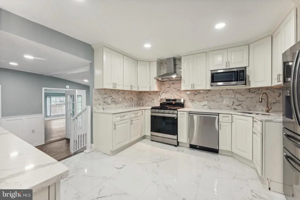 Step into this fully renovated 4-bedroom, 2.5-bathroom home offering a thoughtfully designed layout and modern finishes throughout. From the moment you enter the enclosed front porch with gleaming hardwood floors, you'll feel the warmth and character this home exudes. The porch flows seamlessly into a welcoming living room featuring a stacked stone electric fireplace, open to a spacious dining area—perfect for entertaining. The heart of the home is the updated kitchen, featuring large tile flooring, sleek quartz countertops, and a breakfast bar that opens to the main living area, blending functionality and style. Just off the kitchen is a cozy den or flex space with access to a fully fenced backyard, ideal for relaxing or hosting guests. The primary suite is a private retreat, complete with hardwood floors, a generous walk-in closet, and a luxurious en-suite bathroom featuring a Jacuzzi tub and a separate stall shower. The lower level offers a finished bonus living area, perfect for a media room, playroom, or game space. There's also an unfinished basement section with a laundry area and plenty of storage options. This charming rancher sits on a large corner lot and includes an oversized two-car garage. With every detail thoughtfully updated, all that’s left to do is move in and make it your own!