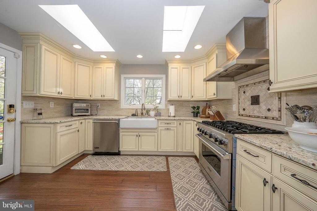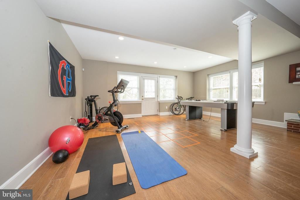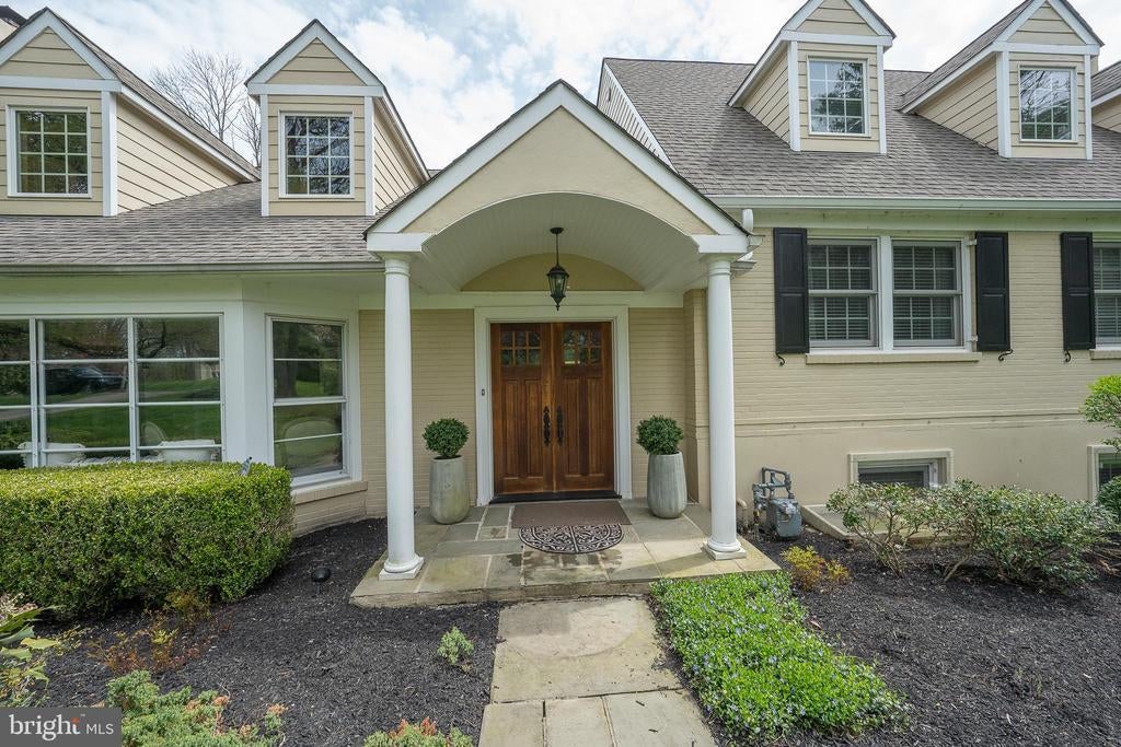 Tucked away on a quiet Gladwyne cul-de-sac neighboring Philadelphia Country Club, 1717 Martins Lane is a thoughtfully modernized painted brick farmhouse offering a seamless blend of timeless design and contemporary comfort. Set on beautifully landscaped grounds, the home’s wide terraces and sparkling pool invite outdoor living and entertaining in a private, resort-like setting. Inside, richly stained hardwood floors unify the open, sun-filled layout. A deep bay window illuminates the formal fireside living room, which flows effortlessly into the dining area and onward to a striking kitchen designed for both everyday use and hosting. Outfitted with stainless Thermador appliances—including French door refrigeration and 6-burner gas range—the kitchen features a large L-shaped seated island, deep white farm sink, and expansive single-pane window that fills the space with natural light. The adjacent family room, anchored by a crisp white brick gas fireplace, is flanked by custom built-ins that offer stylish and efficient storage. Just a few steps up, three bedrooms include one en suite and two that share a double-vanity hall bath. The private primary suite is a true retreat, accessed behind double doors and offering abundant natural light, generous closet space, and a luxurious bath with white stone-topped double vanity, deep soaking tub, and seamless glass-enclosed dual shower. The top level is perfect for guests, work, or play, with two large bedrooms—one currently used as an office—and a spacious lounge or den. A full hall bath serves this floor, offering flexibility for a variety of needs. On the lower level, a home gym, recreation space, and lounge area with a repurposed brick fireplace extend the living space. A large unfinished storage room with workshop, dedicated laundry with sink, and a convenient powder room round out this level, with direct access to the rear garden, sweeping terrace, and pool with integrated hot tub. 1717 Martins Lane offers a rare opportunity for turnkey living in one of Gladwyne’s most desirable locations.