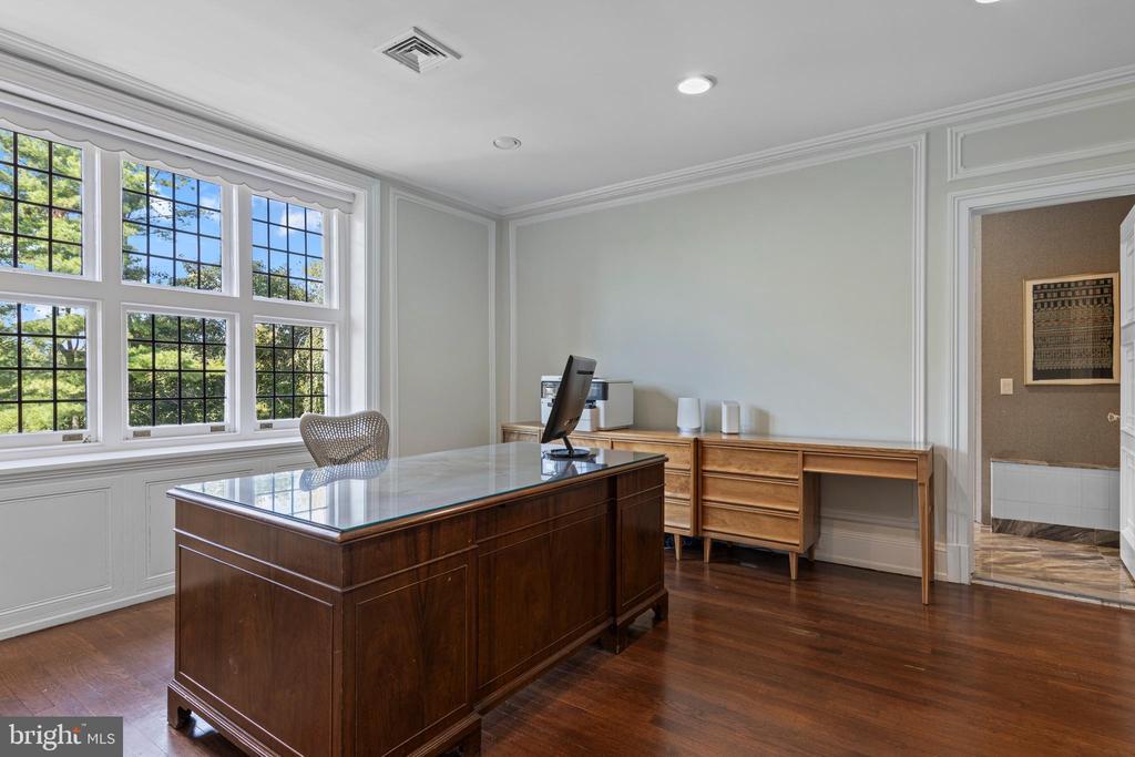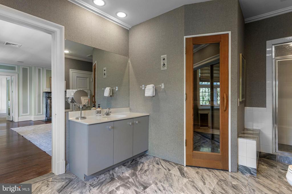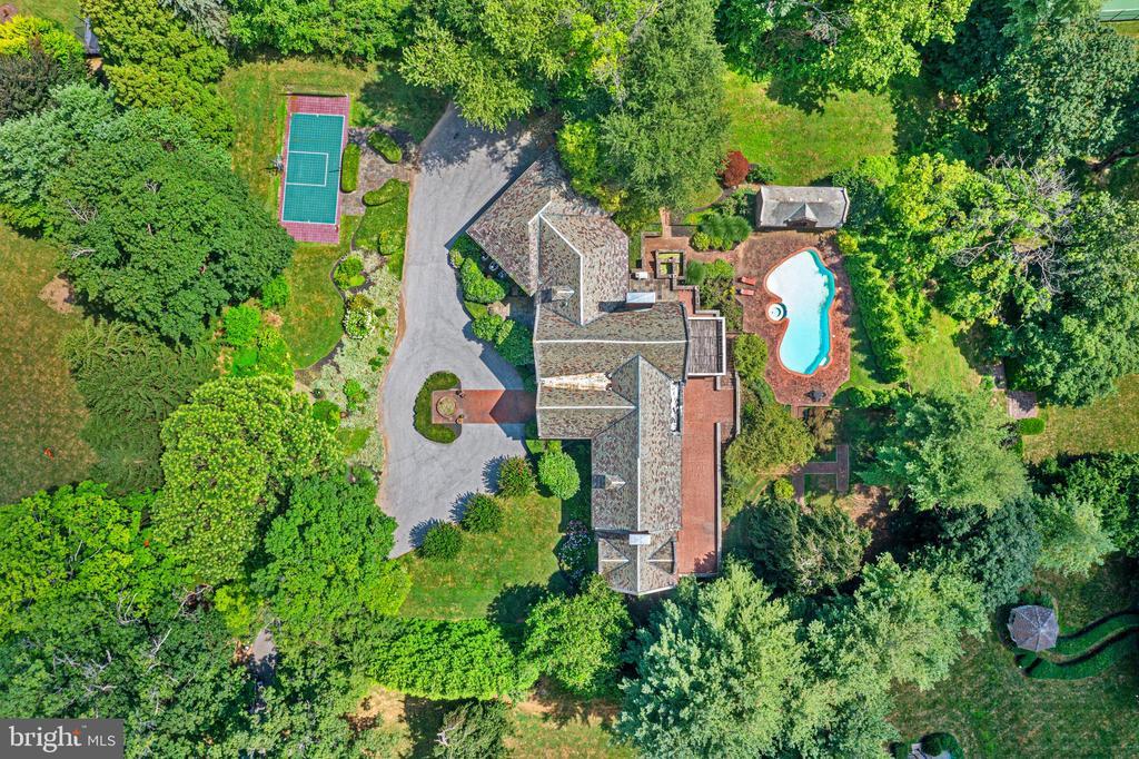 Set on 1.6 acres in sought-after Northside Villanova within Lower Merion Township, this 1924 red brick manor showcases timeless architecture with a slate roof, expansive leaded glass windows, and nearly 9,000 square feet of living space. Set back from the road, the approach is marked by a circular drive and a canopy of mature trees that frame the property with privacy. The entry vestibule opens to a dramatic foyer with wainscoting, leaded glass windows, and views through French doors to the rear terrace, flanked by the formal living and dining rooms. Natural light, hardwood floors, and detailed millwork set a welcoming tone, while a sweeping staircase with iron railings and a wood handrail rises to a landing with a built-in window seat —a striking first impression. The generously sized formal living and dining rooms reflect the home’s distinction with high ceilings, paneled walls, and carved limestone fireplaces; six fireplaces in total. French doors continue in nearly every room, extending to large terraces on the rear of the home. The living room opens into a bright sunroom with black and white checkered tile floors, an additional fireplace, while the dining room connects to an all-season room overlooking the rear grounds. Built-in bookshelves and glass-front cabinetry enhance the architectural character of the dining room, while a butler’s pantry, a cozy sitting room with fireplace, and a formal powder room complete this wing. The kitchen features soaring ceilings, a center island, granite countertops, and generous cabinetry, some with glass-front doors, as well as professional grade appliances. A built-in banquette is framed by two-story windows that provide abundant natural light. An open rear staircase leads to a large second-floor family room that overlooks the kitchen, with built-ins and high ceilings creating a natural gathering place. Next to the kitchen, a mudroom with entry to the garage and driveway adds convenience with an informal powder room, pantry, and coat closet. At the top of the main staircase, the primary suite commands its own private wing. This large room features paneled walls, hardwood floors, a marble fireplace, and windows framing both front and rear views. A light-filled dressing room connects to the ensuite bath. In the style of homes built in this era, a second primary bath with suana is found on the opposite side of the suite. This bath also opens Jack-and-Jill style to an office (which could be bedroom 6). The configuration continues as this room connects to an additional jack and jill bathroom and an additional bedroom. Off the center hall, two additional updated bedrooms offer ensuite baths. A spacious laundry room is conveniently located nearby. Through the 2nd floor family room, is an additional sitting room and adjoining bedroom also has an ensuite bath. It could serve as an in-law or au pair suite, or a homework room. In total the home offers 5/6 Bedrooms and 6 full baths. The lower level offers a large area with daylight windows, providing potential for future finishing. This level also includes a wine cellar and additional storage spaces. The rear grounds are designed for both recreation and relaxation, featuring an expansive terrace, an inground gunite pool and pool house w/ 2 bathrooms/changing rooms, washer/dryer, kitchenette. Also side tennis/basketball sport court. Mature trees and gardens frame the setting and provide privacy. A side entry attached garage has 2 bays. Located in the award-winning Lower Merion School District and close to many of the area’s private schools as well as renowned country clubs, the Villanova train station just one mile away, and I-476 for easy access to Philadelphia. 717 N. Spring Mill Road is a distinguished Main Line estate with enduring architectural presence. While cherished by the same owners for more than 20 years, it now offers the perfect canvas for new owners to personalize, blending timeless character with modern vision.