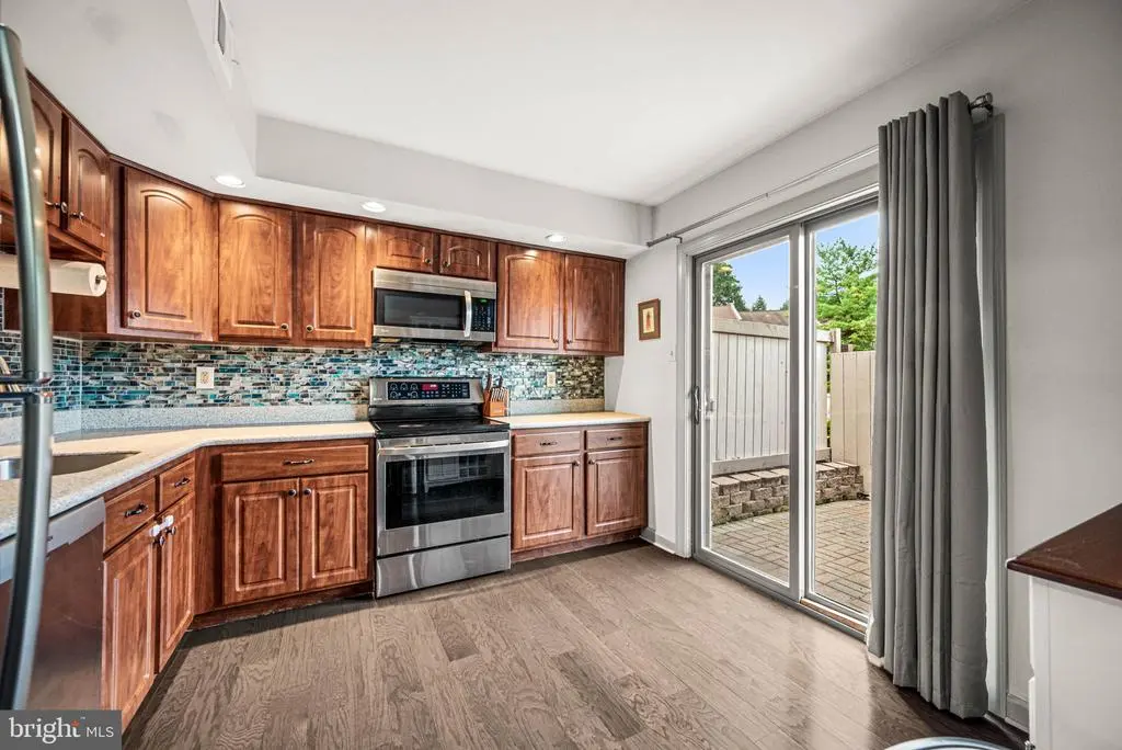 Welcome to 1801 Linden Way – a beautifully updated end-unit townhome tucked into the desirable Prussian Woods community of Upper Merion Township. This spacious 3-bedroom, 2.5-bath home offers over 1,580 square feet of stylish, low-maintenance living with open floor plan and thoughtful updates throughout. Built in 1979 and completely modernized, this home is move-in ready and perfect for today’s lifestyle. Step inside to find hardwood-style flooring, updated lighting, newer windows, and sliding doors that fill the space with natural light. The main level features a warm and welcoming layout with a sunlit eat-in kitchen boasting granite countertops, stainless steel appliances, a tile backsplash, and a convenient passthrough to the formal dining area. Sliding glass doors off the kitchen lead to a charming private front patio—ideal for morning coffee or outdoor dining. The spacious living room is anchored by a cozy wood-burning fireplace and opens to a rear patio, creating an easy flow for entertaining or simply relaxing outdoors. A stylish powder room and coat closet complete the main floor. Upstairs, you'll find a generous primary suite with two large closets and an updated en-suite bathroom featuring a stall shower and custom tilework. Two additional bedrooms offer great space for family, guests, or a home office, along with a sleek, updated hall bath and a convenient upper-level laundry area. The full basement provides excellent options for storage; a workshop or a home gym. This home is ideally situated near everything King of Prussia has to offer. Enjoy quick access to major highways, making for an easy commute to Philadelphia, West Chester, Conshohocken, and the Main Line. You'll be just minutes from exceptional shopping and dining at the King of Prussia Mall, or hiking and biking trails at Valley Forge National Historical Park. Located in the top-rated Upper Merion Area School District, this home offers the perfect blend of comfort, convenience, and community. $5000 grant money program available that provides 100% or less financing without PMI and only requires a 620 credit score and is NOT restricted to First Time Homebuyers.