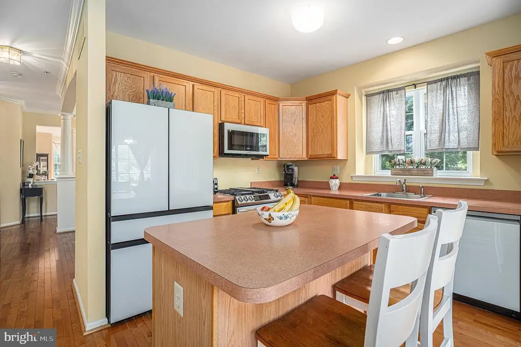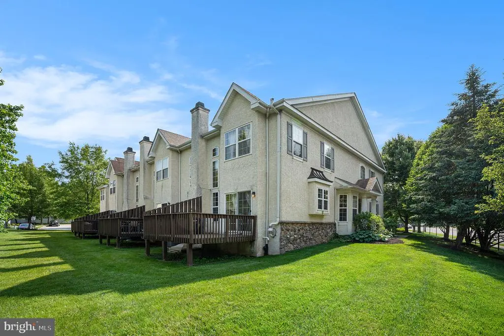Beautifully maintained end-unit townhouse on a quiet cul-de-sac in the desirable Hill View Community. Features an open floor plan with hardwood floors, formal dining room with bay window, and large eat-in kitchen with island and sliders to a nice deck. Two-story family room offers abundant natural light, a gas fireplace, and custom motorized blinds. Living room with second bay window and first-floor powder room. Upstairs, the spacious primary suite includes a walk-in closet and large bath with jetted tub, double vanity, and stall shower. Two additional bedrooms, hall bath, and second-floor laundry. Finished basement with half bath and storage. Newer roof. Convenient to Routes 476, 76, 202, shopping, and Plymouth Community Center.