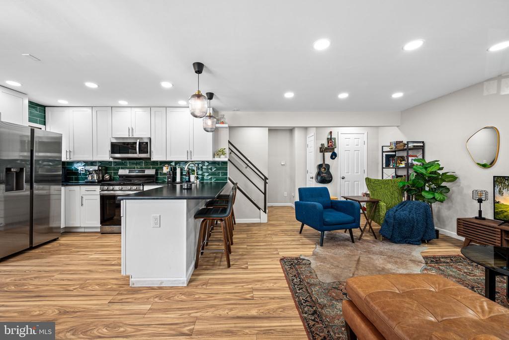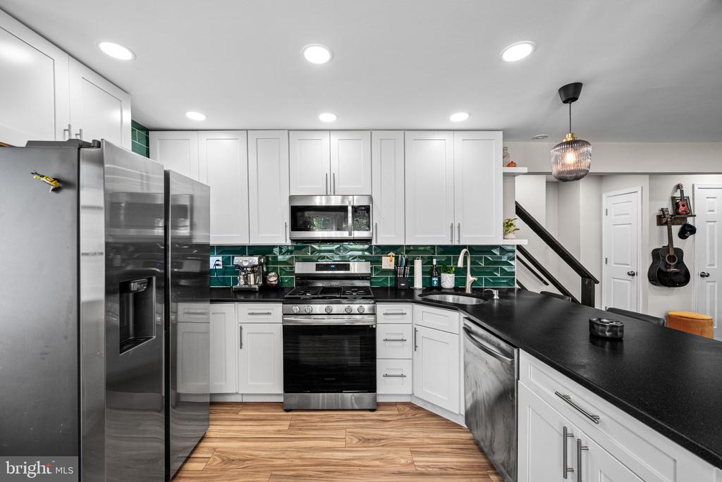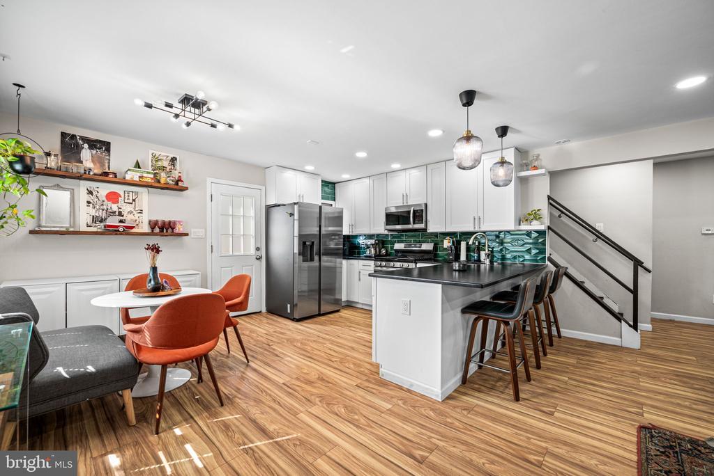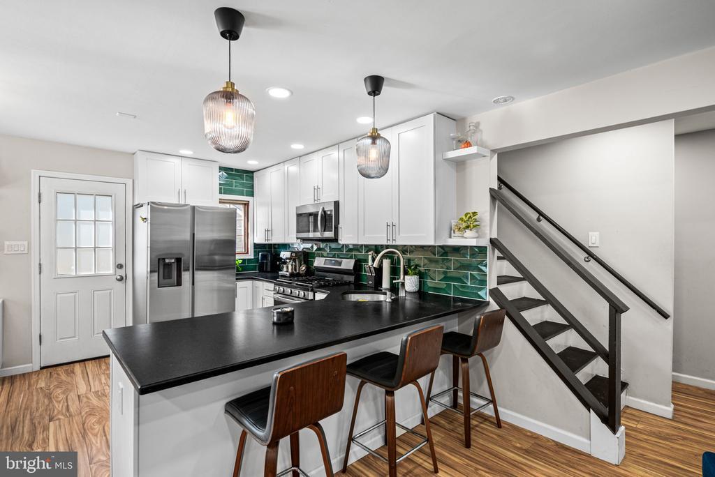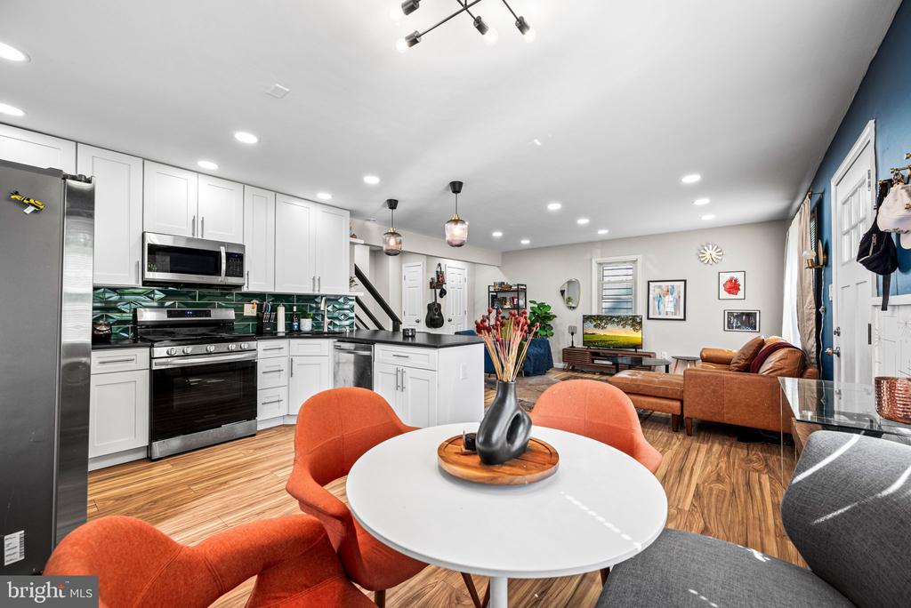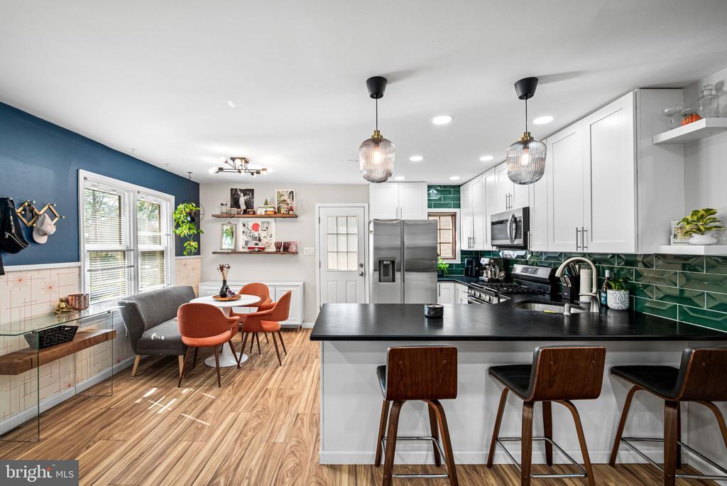 Fully updated and move-in ready, 2711 Taft Ave features an airy open-concept main level with wide-plank LVP flooring, abundant recessed lighting, and seamless flow from living to dining to kitchen. The sleek kitchen boasts white shaker cabinetry, striking emerald green subway tile, solid-surface black counters, stainless steel appliances, and a peninsula with pendant lighting and breakfast-bar seating. The first floor includes two comfortable bedrooms and a beautifully remodeled full bath. Upstairs, a private third bedroom pairs with a second renovated full bath—ideal for a guest or primary suite. Modern fixtures and thoughtful finishes continue throughout. Outside, enjoy a large lot with a wide, usable rear yard plus a rare detached 2-car garage for parking, storage, or a workshop. Prime Glenside location near Keswick Village shops and dining, minutes to Curtis Arboretum and local parks, and convenient to regional rail, Route 309, and the PA Turnpike for easy commuting.