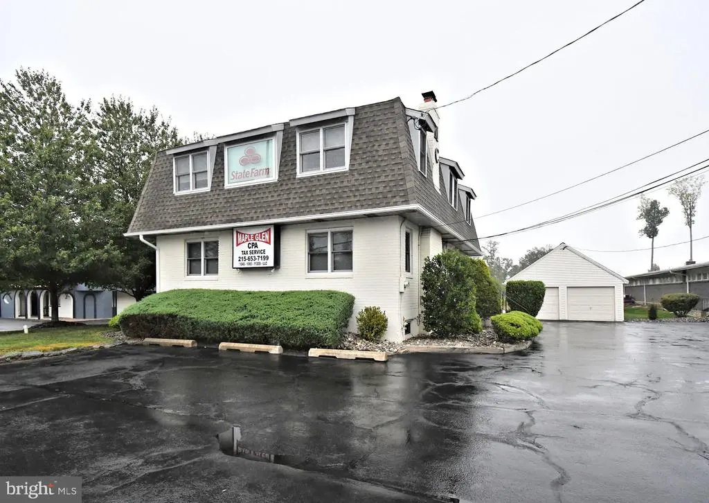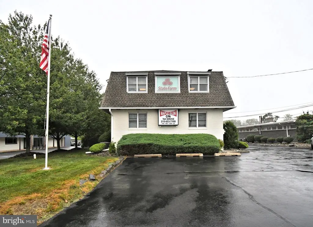 Meticulously maintained office building in Maple Glen. Awesome location on Rt 63 (WELSH RD) with excellent exposure to an abundance of traffic. Huge illuminated sign awaiting your very own marque. This property was used as a Real Estate Office for the past 50+ years. Second floor currently rented to a State Farm Insurance Agency. This property is in move in condition featuring multiple offices on first floor with a reception area and one rest room. Second floor features a huge open area, one large office a small kitchen and a restroom. Full basement for storage. Three car garage, new roofing (2021) on all buildings. New central air conditioner with heat on second floor. Gas heat and central air on first floor (compressor replaced 3 years). Large parking lot, perfect location for another real estate office, title company, medical or professional use. Great for a contractor's office building. Located on Rt 63 between Limekiln Pike and Norristown Rd. Owners are former Real Estate Broker and agent. 24hrs+ notice to show property