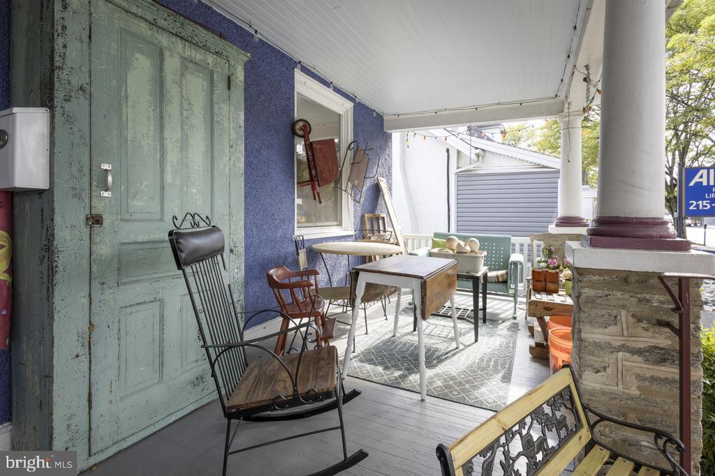 Welcome to 221 S Easton Road, a property where character and opportunity meet in the heart of Glenside. This distinctive bungalow, with its broad-covered porch and classic lines, offers more than just curb appeal. Zoned MU1 and blending both character and versatility, this mixed-use property offers the flexibility you’ve been looking for. The designation allows for a single residential unit as well as a range of commercial possibilities—whether as a retail shop, creative studio, or client-facing office with the convenience of a “short commute” and clear separation from the living quarters behind. Throughout the home, beautifully refinished wood floors and natural wood doors with crystal knobs add warmth and timeless character, enhancing both the commercial and residential spaces. The front commercial space, currently configured as a welcoming storefront, features a stone fireplace with a Dimplex insert and plenty of natural light. Step beyond its doors and into the delightful residential portion of the home, where thoughtful updates meet enduring charm. The kitchen makes an immediate impression with quartz counters, a marble-topped island, farmhouse sink with garden views, pantry storage, and a stacked washer/dryer. The kitchen opens to a cozy sitting room with custom built-ins and a second Dimplex fireplace. The main floor bedroom offers two closets and sits just steps from a tastefully updated full bath featuring updated fixtures, wainscoting, and a shower-over-tub. Upstairs, two more bedrooms, a full bath with stall shower, a kitchenette, and plentiful storage make the second floor ideal for extended living space, a rental, or private quarters. The basement, a woodworker’s dream, offers a sprawling workshop, office, and storage areas, complete with its own restroom and dual access from the kitchen or the rear walkout. Outdoor living extends the home’s appeal, with a partially covered deck overlooking a fish and frog pond, plus a hammock and bench to enjoy the garden setting. A wide driveway accommodates 3–4 cars, while the detached two-car garage with barn-style doors and a manageable lawn wrapping behind complete the picture. Situated in the heart of Glenside’s business district, this mixed-use property enjoys steady foot and car traffic with plenty of business and bustle out front while providing a peaceful and secluded retreat in the residence and out back. Renninger Park, Glenside Memorial Hall, and the community pool are just around the corner, and a wealth of dining and shopping options are within easy reach—along with the Glenside train station just three blocks away. Whether you envision an investment property, a new home for your business, or a place where you can truly live and work with ease, 221 S Easton Road is ready to meet you there.