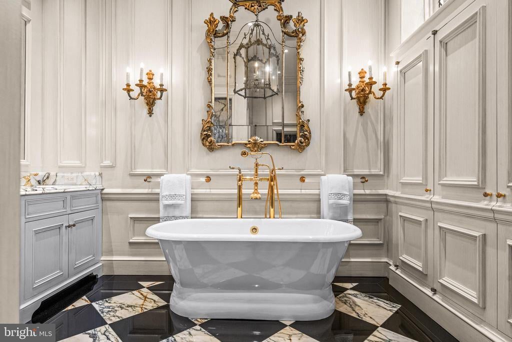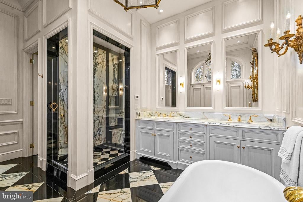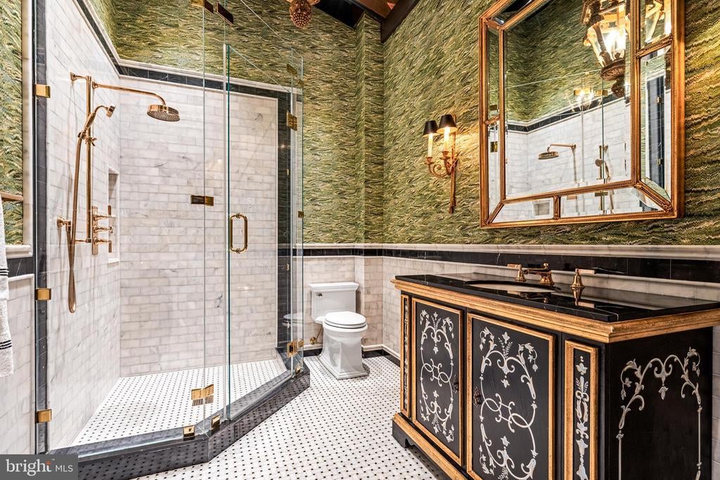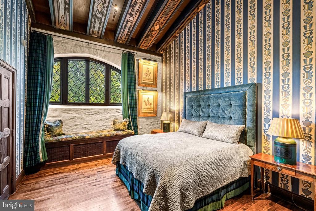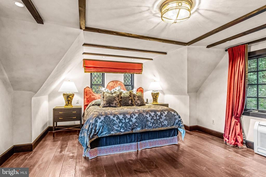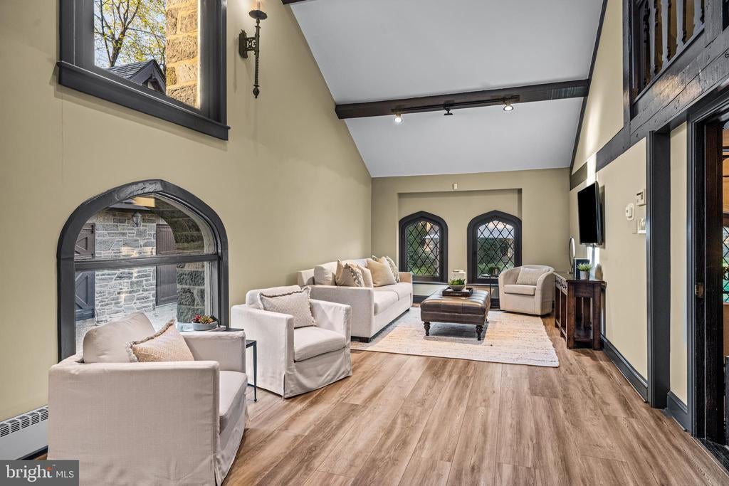 A stunning showcase of Tudor Revival architecture, 56 Crosby Brown Road is a set on 2.8 level acres on a private lane in the heart of Gladwyne on Philadelphia’s prestigious Main Line. Built between 1895–1905, this gorgeous, one-of-a-kind estate seamlessly blends historic grandeur with modern luxury. This exceptional property has been meticulously updated to provide every modern comfort with details executed to perfection. A dramatic entry Loggia leads you to grand leaded glass doors where you enter the foyer and center hall anchored by limestone with granite insets and custom limestone surrounds. Crowned by a soaring 25-foot beamed ceiling, the formal living room features a marble wood-burning fireplace with rich millwork and cabinetry, an impressive space for gatherings with access to one of three terraces that look out over the gardens. With its striking hand-crafted leaded glass window, the formal dining room is ideal for seamless entertaining, featuring a concealed doorway providing direct access to the butler’s pantry, wet bar and wine room. The main level also features an exquisite paneled library bathed in natural light from floor-to-ceiling sliders that lead you to the center terrace and gardens. Designed with exquisite custom artisan cabinetry by Downsview Kitchens and featuring Hereau fixtures, Miele appliances and Wolf ranges, this expansive kitchen flows effortlessly into the family room creating a warm and functional space for everyday living. Centered around a grand limestone gas fireplace, the family room offers a comfortable gathering place with direct access to the patio, outdoor kitchen and rear gardens. Adjacent to the kitchen, a spacious sun-drenched bonus room that formerly housed a lap pool with the potential to be restored, now serves as a bright gym and relaxed lounge area. Completing the main level is a laundry room, formal and informal powder rooms, and full bath. Ascend to the second floor, where dramatic 25-foot ceilings boast beams inlaid with hand painted canvases.The primary suite has vaulted ceilings, rich wood paneling with built-in closets, a sitting area, and an exquisite, extensively renovated ensuite bath featuring an Italian marble throughout and Sherele Wagner Fixtures. The second floor also features three sizable en-suite bedrooms, all benefiting from modern comforts and newly renovated bathrooms. One of these includes a welcoming gas fireplace. Next to the main home is a charming, completely renovated 2-bedroom, 1-bath carriage house with a full service kitchen. The half-timbered exterior recalls an English country home, while modern amenities provide today’s desired comforts. It can be used as a guest house or home office. A circular driveway with attached garage; original stone potting shed, extensive stone terraces with outdoor kitchen; and meticulously landscaped yard and gardens that were once an arboretum complete this serene retreat. This historic gem is located in the prestigious Lower Merion School District just 1.7 miles from the Haverford and Ardmore train stations, with service to Phila. and NYC. 2 miles from Merion Cricket Club, 10 miles to center city Phila., close to various private schools, restaurants and shopping. With its unparalleled combination of history, craftsmanship, and modern elegance, 56 Crosby Brown Road is truly a Main Line legacy property.