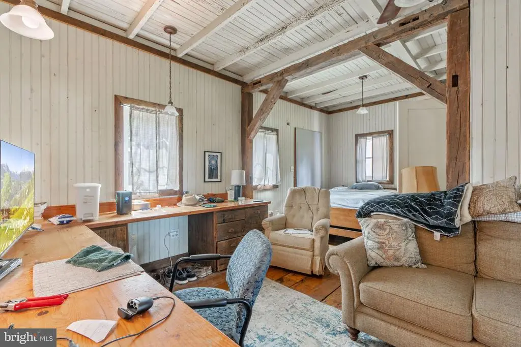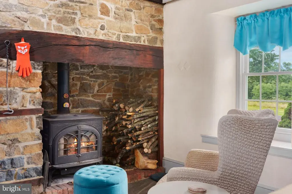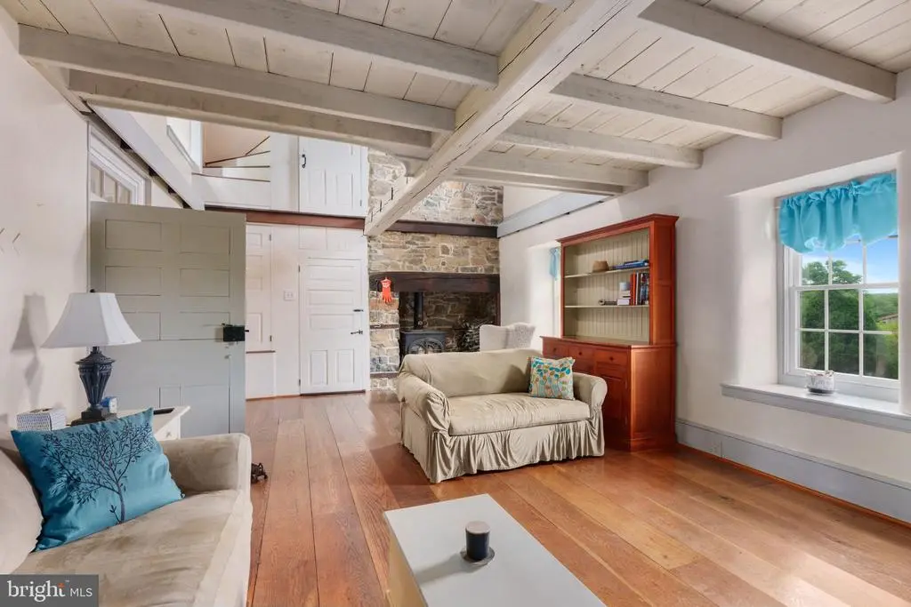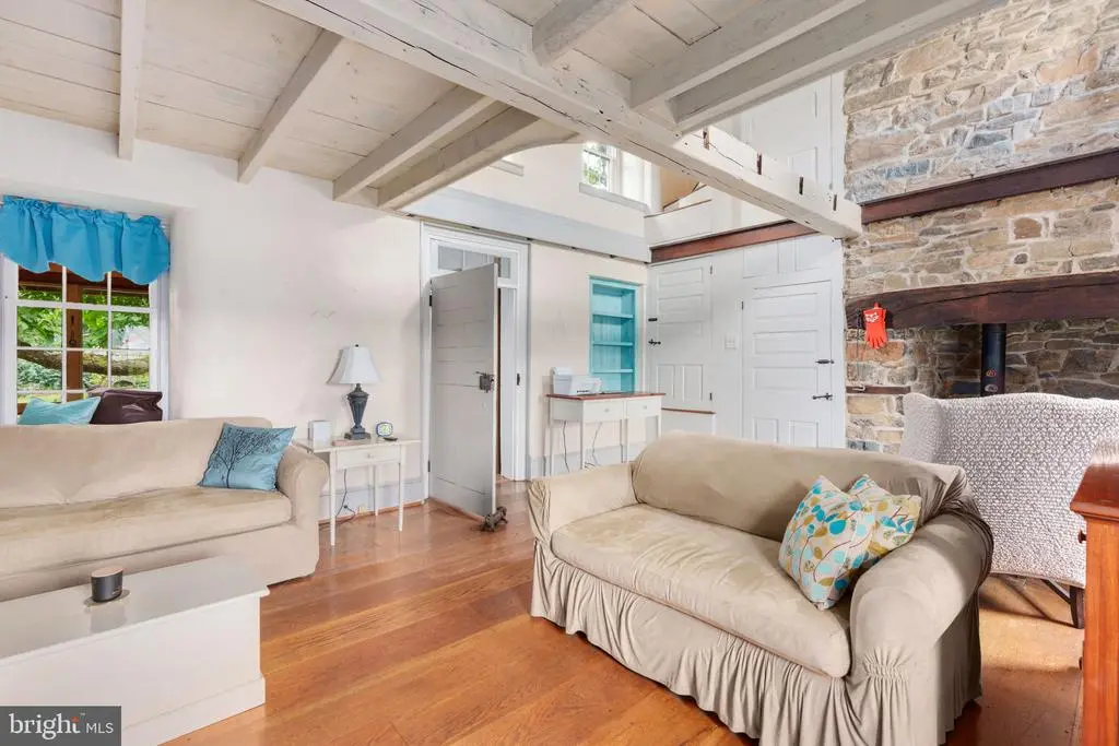 This home could be featured in Country Living Magazine. Here is your opportunity to own a 225-year-old stone farmhouse, originally built in the 1800s and and has been meticulously renovated since 1997. The residence blends authentic colonial charm and history with the comfort of modern amenities. Step onto the covered front porch and through the doorway into a living room full of character, highlighted by exposed beams and a walk-in stone fireplace with a wood stove insert. The wainscoted dining area is the perfect gathering space, adjoining an open-plan kitchen that features an island, generous prep areas, and ample cabinetry. Just off the kitchen you’ll find a sun-filled mudroom, full bath, and a well-appointed laundry room with sink, worktop, and storage. Upstairs, the second floor offers three bedrooms (one of which is a loft-style bedroom overlooking the living room) and a full bath, where the exposed stone walls of the original structure add unmatched atmosphere. The grounds are equally impressive. A two-story barn includes an impressive upstairs workshop, while the lower level features horse stalls. A charming cottage/guest house, currently used as an office, adds flexibility to the property. Additional outbuildings, a fenced pasture with run-in shed, gardens, and a brick patio complete this bucolic setting. Come explore the property and imagine the lifestyle and possibilities that await you.