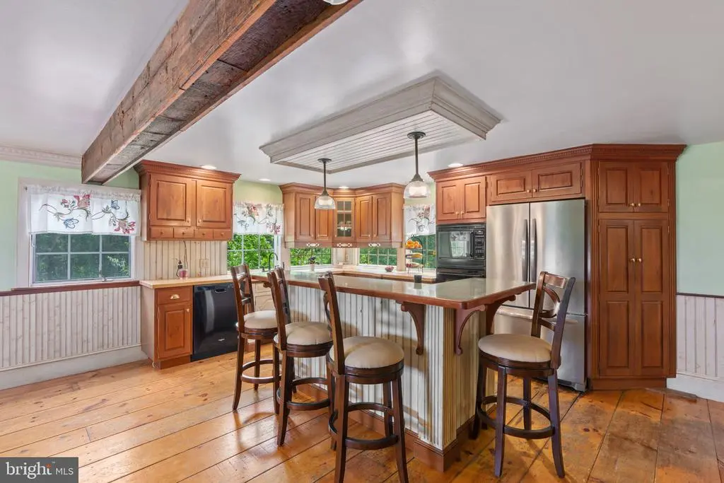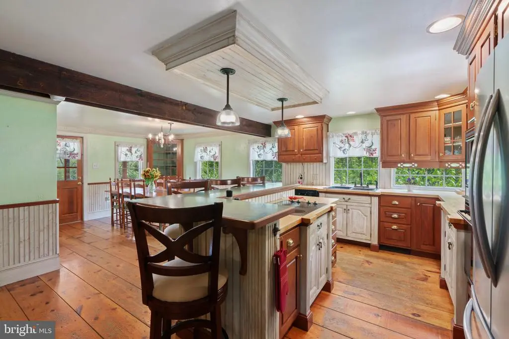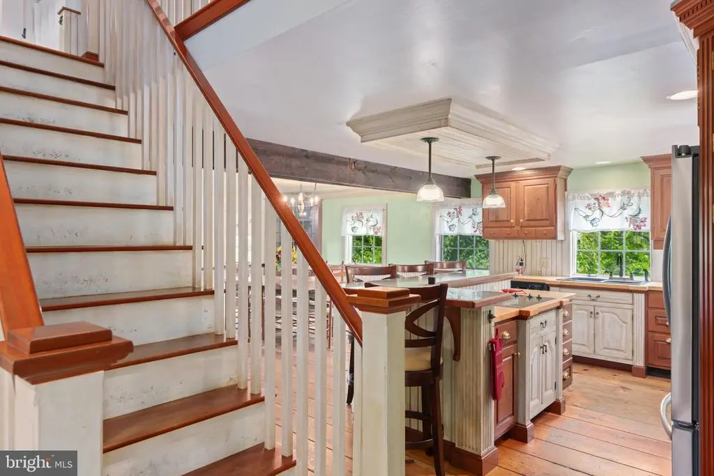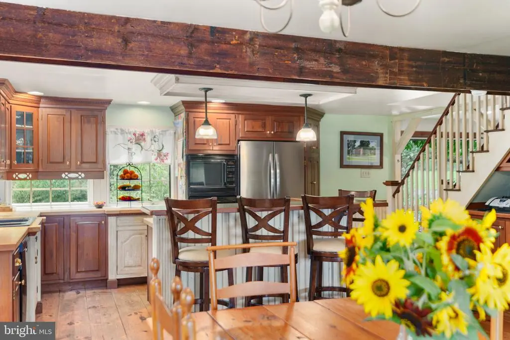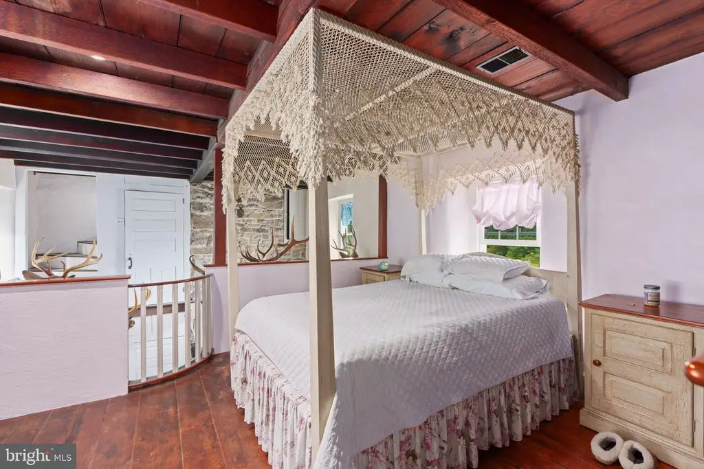 This home could be featured in Country Living Magazine. Here is your opportunity to own a 225-year-old stone farmhouse, originally built in the 1800s and and has been meticulously renovated since 1997. The residence blends authentic colonial charm and history with the comfort of modern amenities. Step onto the covered front porch and through the doorway into a living room full of character, highlighted by exposed beams and a walk-in stone fireplace with a wood stove insert. The wainscoted dining area is the perfect gathering space, adjoining an open-plan kitchen that features an island, generous prep areas, and ample cabinetry. Just off the kitchen you’ll find a sun-filled mudroom, full bath, and a well-appointed laundry room with sink, worktop, and storage. Upstairs, the second floor offers three bedrooms (one of which is a loft-style bedroom overlooking the living room) and a full bath, where the exposed stone walls of the original structure add unmatched atmosphere. The grounds are equally impressive. A two-story barn includes an impressive upstairs workshop, while the lower level features horse stalls. A charming cottage/guest house, currently used as an office, adds flexibility to the property. Additional outbuildings, a fenced pasture with run-in shed, gardens, and a brick patio complete this bucolic setting. Come explore the property and imagine the lifestyle and possibilities that await you.