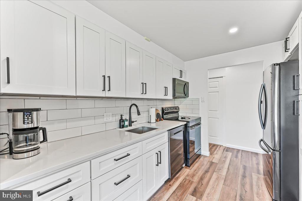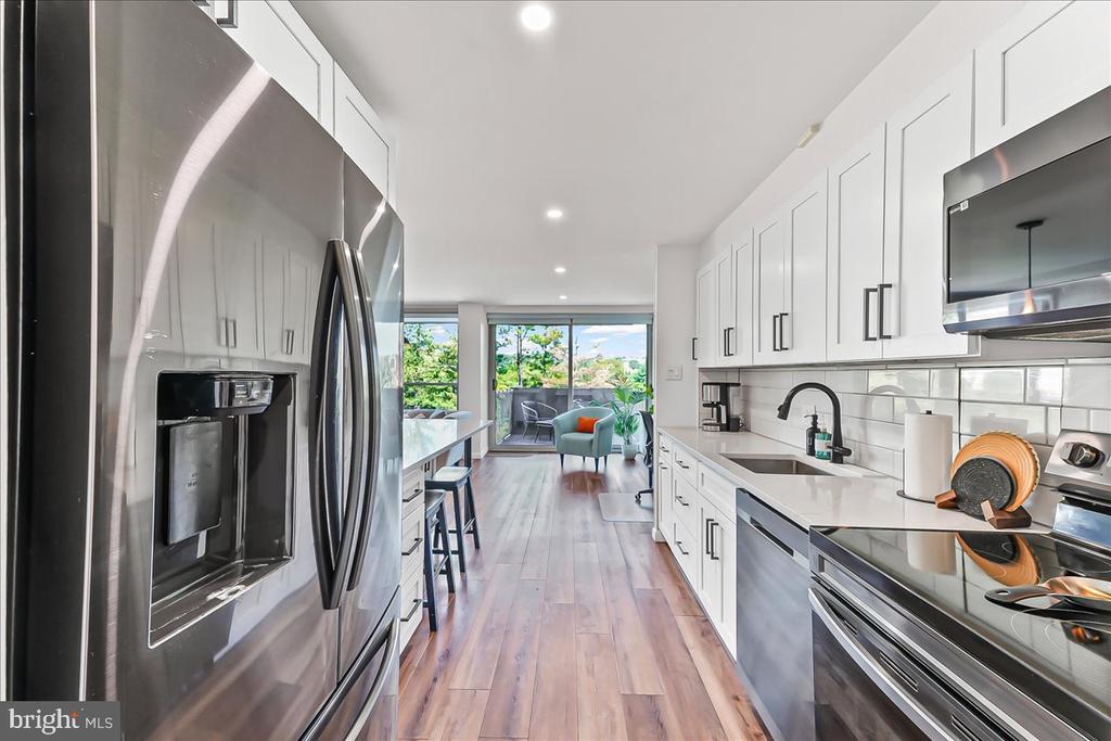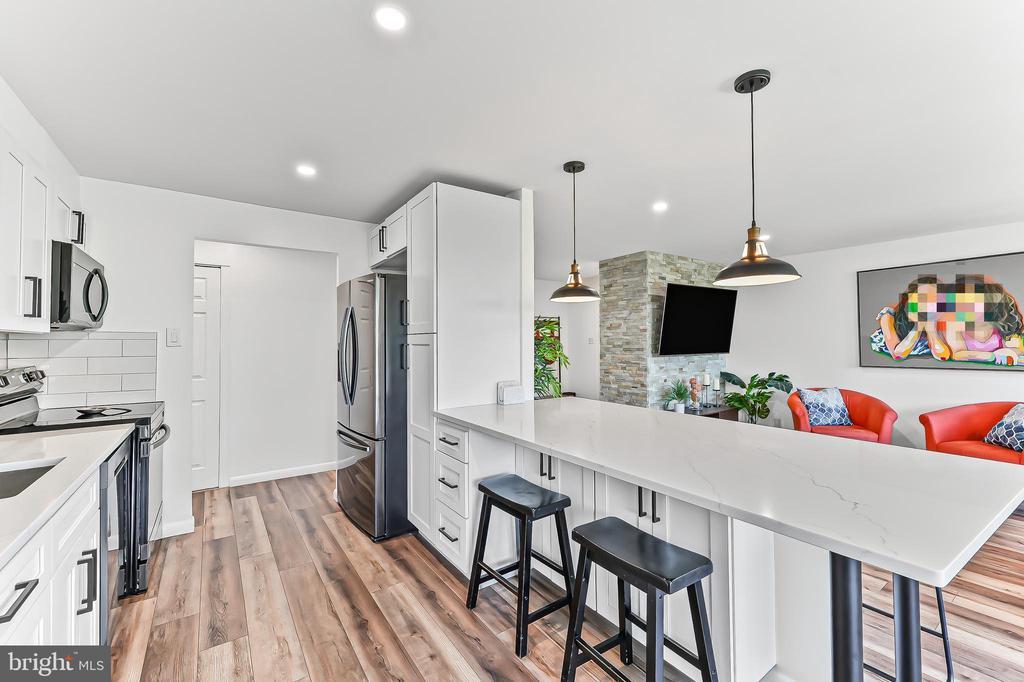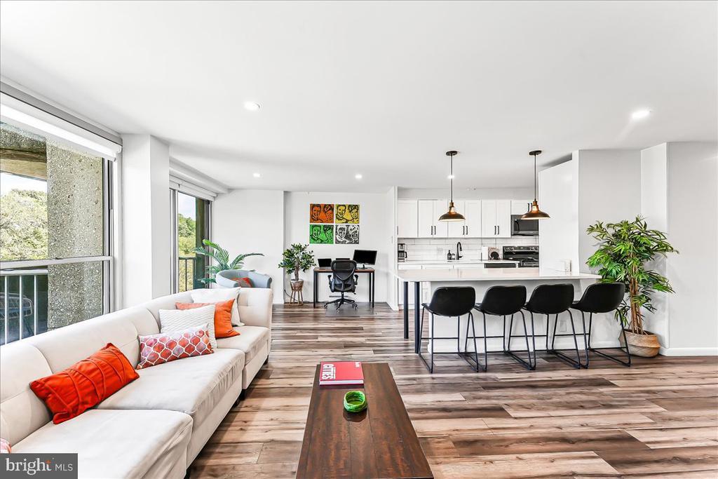Experience refined living in this thoughtfully renovated two-bedroom, two-bathroom condo at The Green Hill, where modern upgrades and serene surroundings create the ultimate retreat. This home features an open floor plan with a beautifully renovated kitchen that includes a large peninsula seamlessly connecting to the living and dining areas, perfect for both everyday living and entertaining. Designer lighting and upgraded electrical service enhance both style and functionality throughout the space. The kitchen is a true showpiece, offering stainless steel appliances, quartz countertops, and timeless shaker cabinetry. Both bathrooms have been completely transformed with new tile, vanities, sinks, toilets, hardware, and fixtures, creating a spa-like atmosphere that feels fresh and sophisticated. Generous closet space throughout the home, along with a full-size in-unit washer and dryer, adds convenience and organization. Residents of The Green Hill enjoy 24-hour gated security and an array of resort-style amenities, including indoor and outdoor pools, a fitness center, tennis courts, walking trails, a playground, shuttle service, and vibrant social spaces. The HOA fee covers all utilities, offering a truly effortless living experience. Situated within the award-winning Lower Merion School District and just minutes from shopping, dining, public transportation, and Center City Philadelphia, this home perfectly balances elegance, comfort, and convenience.