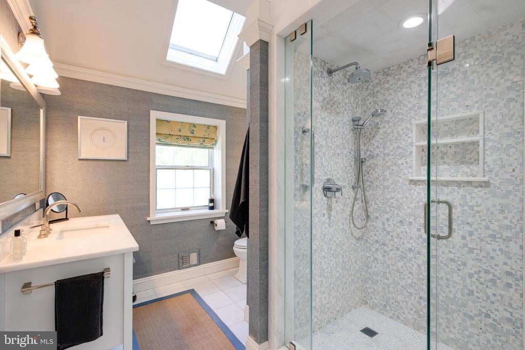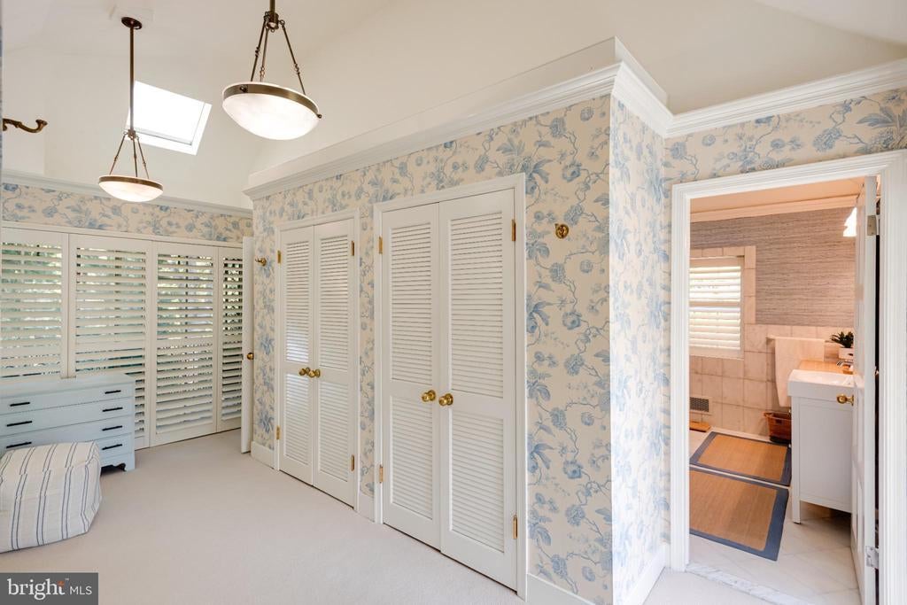 Attic, Attic/House Fan, Bar, Stall Shower, Built-Ins, Carpet, Crown Molding, Exposed Beams, Master Bath(s), Recessed Lighting, Skylight(s), Upgraded Countertops, Wainscotting, Walk-in Closet(s), Water Treat System, Wet Bar/Bar, Wpool Jets, Wood Floors, Wine Storage, Additional Stairway