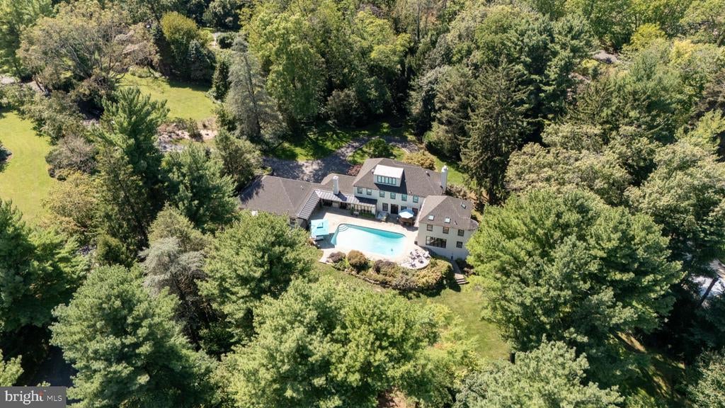 Nestled in a private cul-de-sac, this exquisite French Colonial style residence offers a luxurious lifestyle defined by elegance, privacy, and comfort in desirable Northside Villanova. This home is a true sanctuary, blending timeless architectural charm with modern amenities. A circular drive offers a gracious welcome to a house featuring sun-filled and open interiors boasting spaces for the entire family to gather together or to just find a place to call their own. The open floor plan seamlessly connects the gourmet kitchen, featuring upgraded countertops, stainless steel appliances, and a spacious island, to the family room, where exposed beams, recessed lighting, and a wet bar with built-ins create a warm and inviting atmosphere. Enjoy casual meals in the breakfast area or entertain guests in the adjacent dining room, which opens to a large and sunny living room. A bonus on this level is an adjacent second family room with built-ins. This house can accommodate large-scale entertaining but also provides perfect spaces for quiet evenings at home. Both family rooms are bright and sunny with sliders to the large fieldstone patio and beautiful swimming pool. This private, outdoor oasis features extensive landscaping perfect for outdoor gatherings or quiet evenings under the stars. A new full bath and changing area provide convenience for both guests and family. The home boasts four generously sized bedrooms, each designed with comfort in mind. The primary suite is a true retreat, featuring his and hers en-suite bathrooms, a separate dressing room, and a Juliet balcony with views of the picturesque outdoor area. The third floor features a convenient office and plenty of storage. Venture to the lower level, where a finished, heated basement awaits, offering ample space for recreation or relaxation. This house has been meticulously maintained by the current owners, with a new roof installed in 2024, as just one example. Additional highlights include a three-car attached garage with ample storage and EV charger, geothermal energy, a generator, a new mudroom with a dedicated dog bath and energy-efficient double-pane windows that enhance the home's comfort and sustainability. Security features, including a comprehensive system and smoke detectors, provide peace of mind. This exceptional property is not just a home; it's a lifestyle. Experience the perfect blend of luxury, comfort, and tranquility in this stunning residence, where every detail has been thoughtfully curated to create a warm and inviting atmosphere. Conveniently located near major transportation, prime dining and shopping, and in award winning Lower Merion School District.